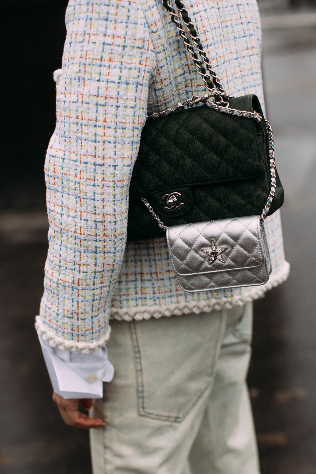 Особливої формули тут немає. Якщо ви поки не готові до експериментів із ювелірними прикрасами, почніть зі своєї сумки. Просто додайте до улюбленої моделі кілька нових аксесуарів — м’які брелоки-іграшки, ряди перлин, хустки чи, до прикладу, інші мінісумки.