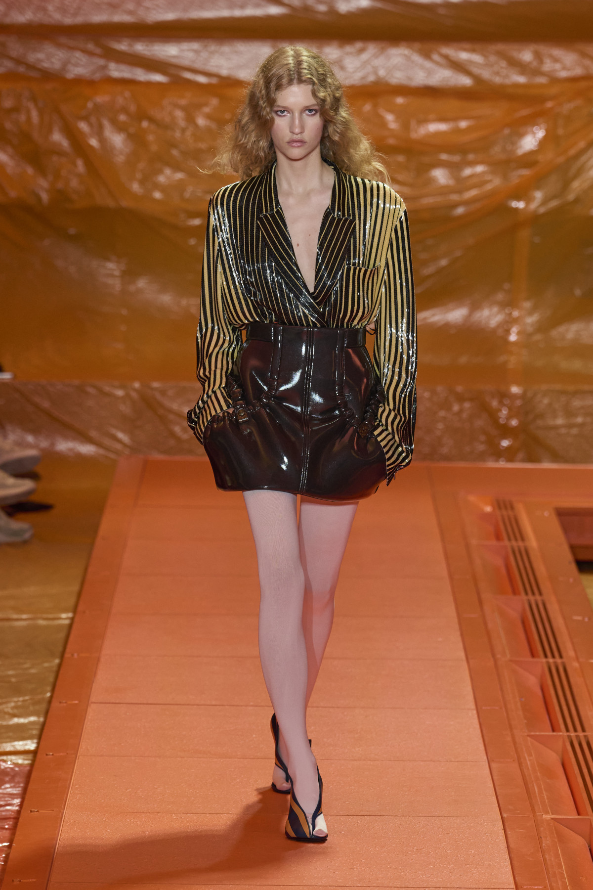 Не лише розмаїття деніму було продемонстроване на подіумах сезону весна-літо — 2024. Ще одним матеріалом, яким не нехтували під час створення своїх лінійок дизайнери, стала шкіра. Її ми побачили в багатьох варіаціях: у бомберах, куртках, тренчах, топах, штанах, жакетах і, безперечно, спідницях. Саме останні зайняли чільне місце серед трендових речей нового сезону.