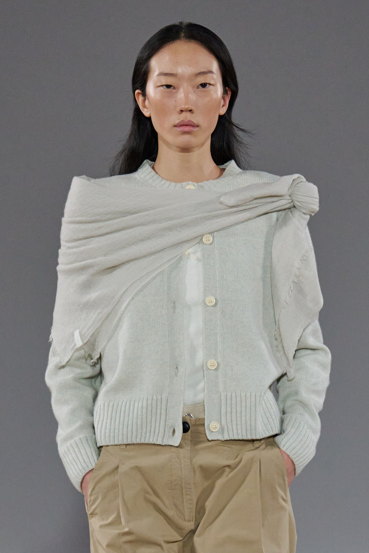 Шалі з бахромою пов’язуємо на стегна, легкі трикутні мереживні або шовкові шарфи фіксуємо вузлом дуже вільно у дусі Celine або як скаутську краватку. Більш щільними шарфами закриваємо шию спереду та залишаємо кінці вільно звисати на спині, або частково ховаємо у блейзер.