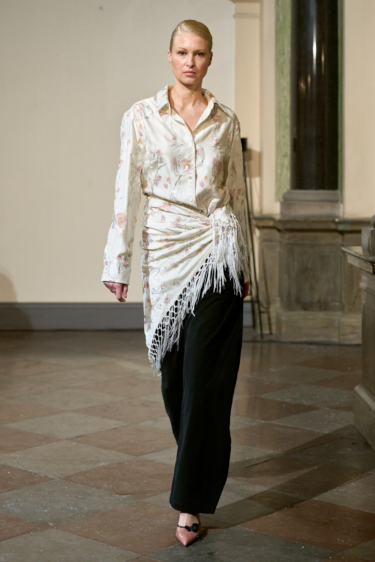 Масивні шкіряні куртки в стилі Saint Laurent залишаються актуальними як весною, так і наступної осені. Скандинавські дизайнери пропонують поєднувати їх зі спідницями довжиною до коліна, брюками-кльош або мереживними легінсами. Рукава та низ сорочок і блейзерів виставляємо напоказ.