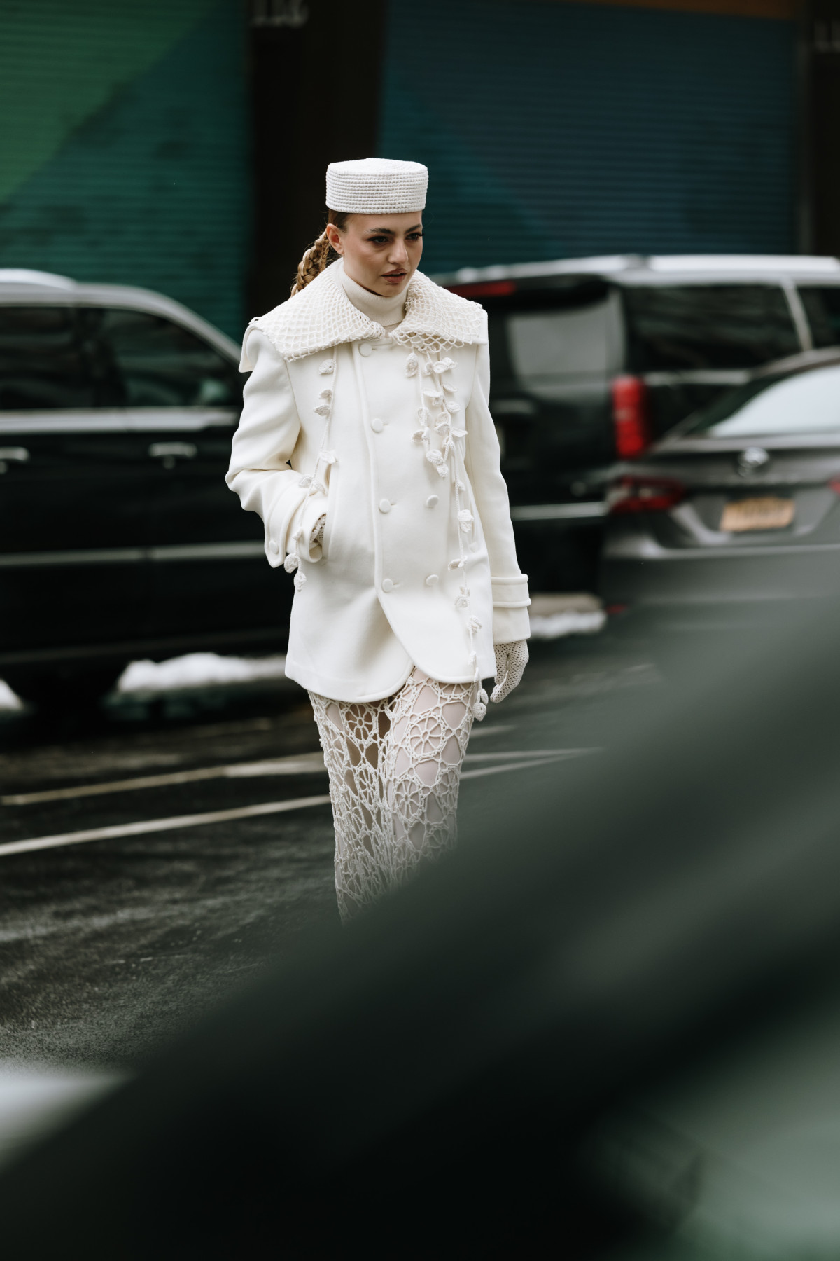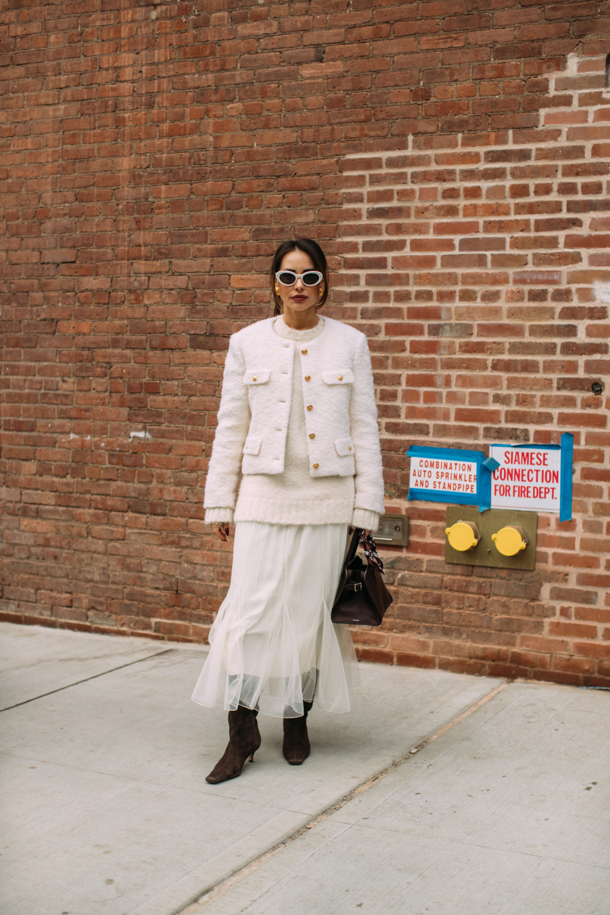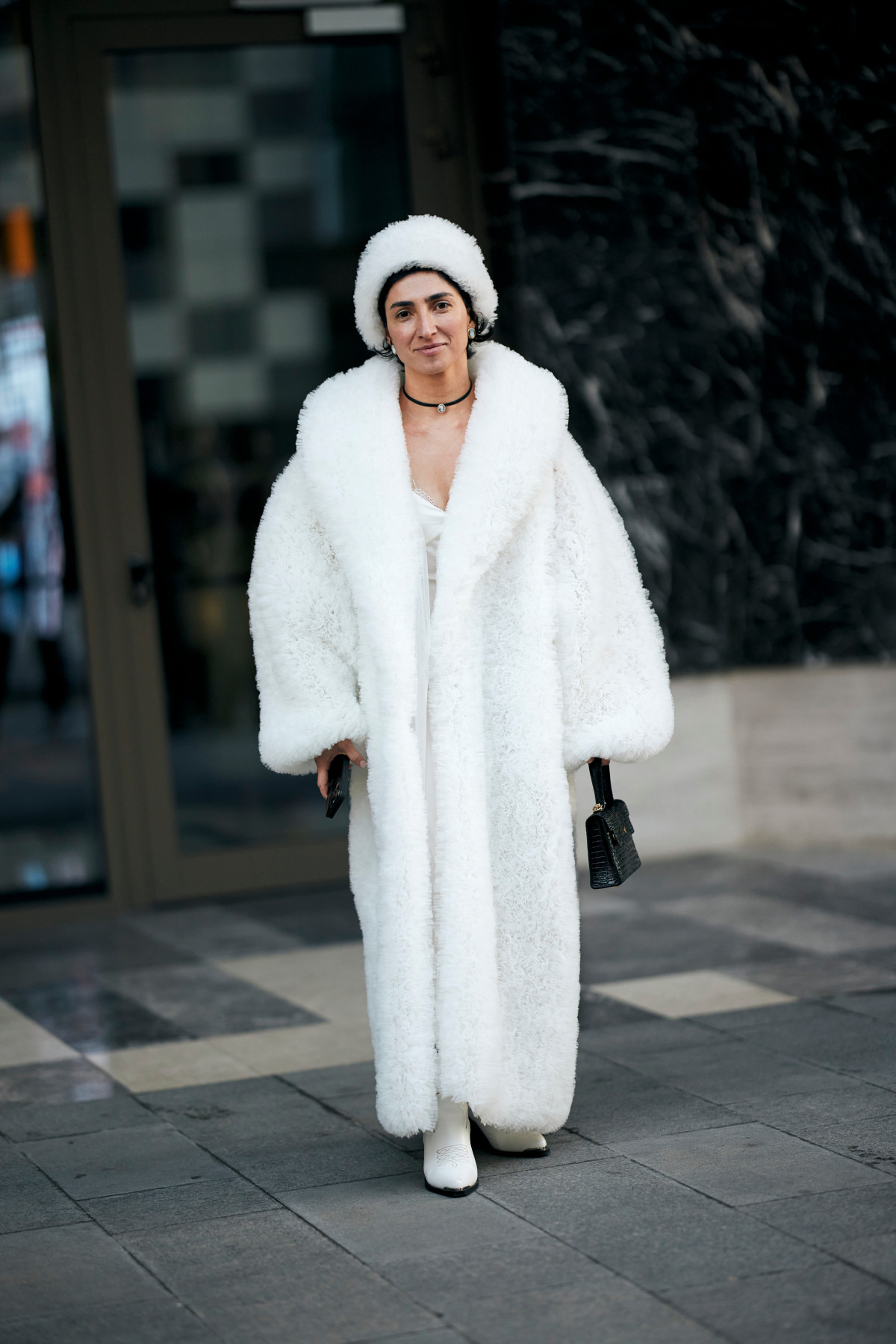 Взимку total white розкривається по-особливому: на тлі сірого міста чи свіжого снігу він виглядає ще чистішим і вишуканішим. Це той випадок, коли мінімалізм говорить голосніше за складні декоративні рішення, а кожна річ — від пухнастого светра до лаконічних шкіряних черевиків — стає частиною продуманого гармонійного ансамблю.
