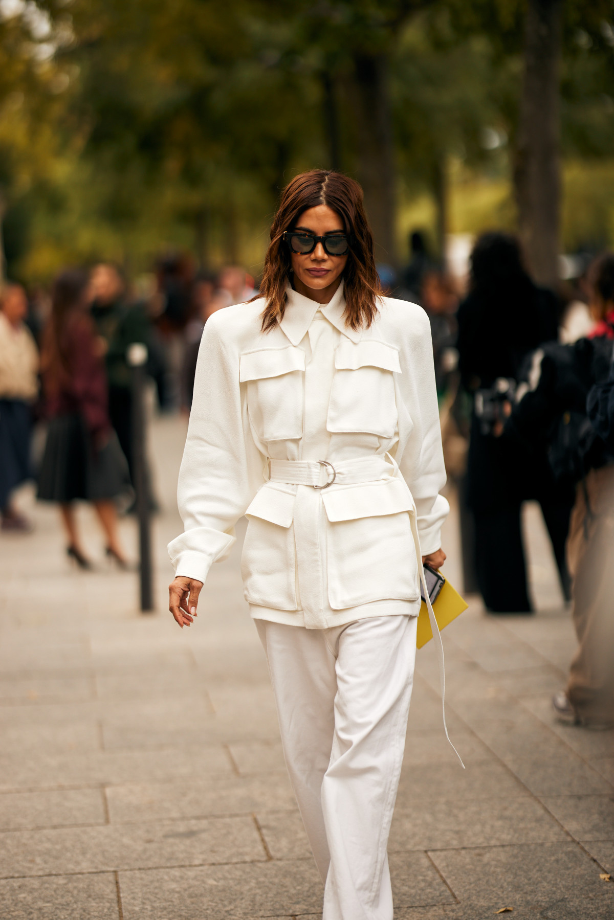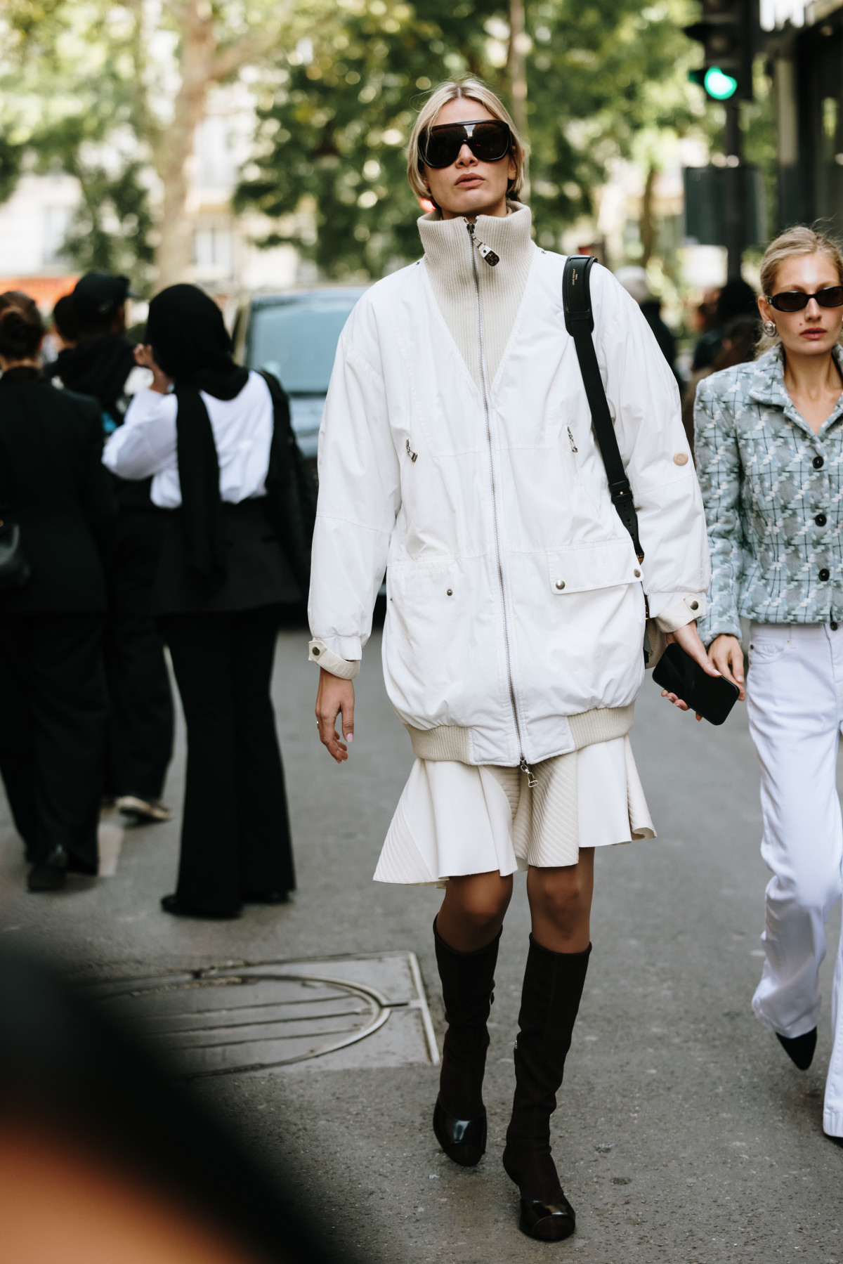 Попри зовнішню простоту, повністю світлий образ дає можливість експериментувати: поєднувати об’ємний верх і стриманий низ, міксувати матові та глянцеві фактури, балансувати між різними естетиками. У цьому білосніжному полі легко грати зі стилями, не боячись «перевантажити» лук — стримана палітра все утримає.