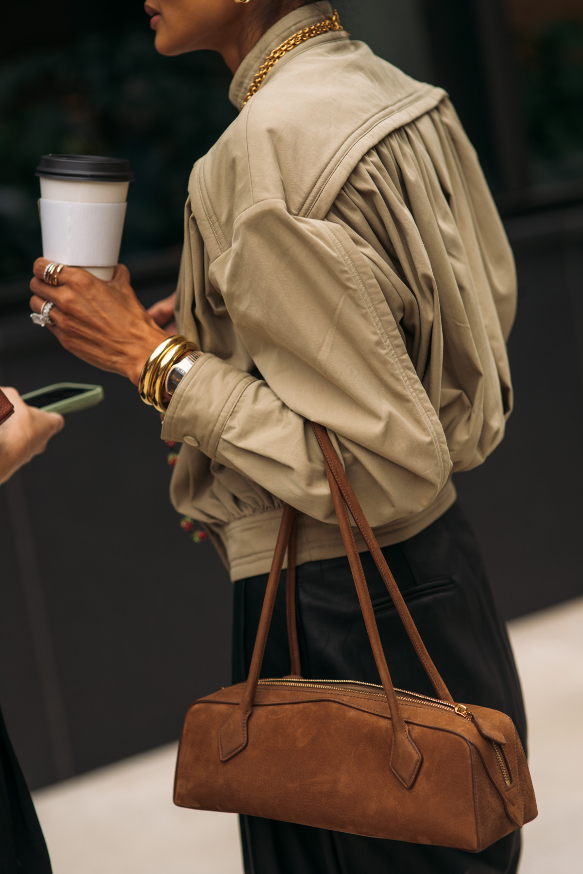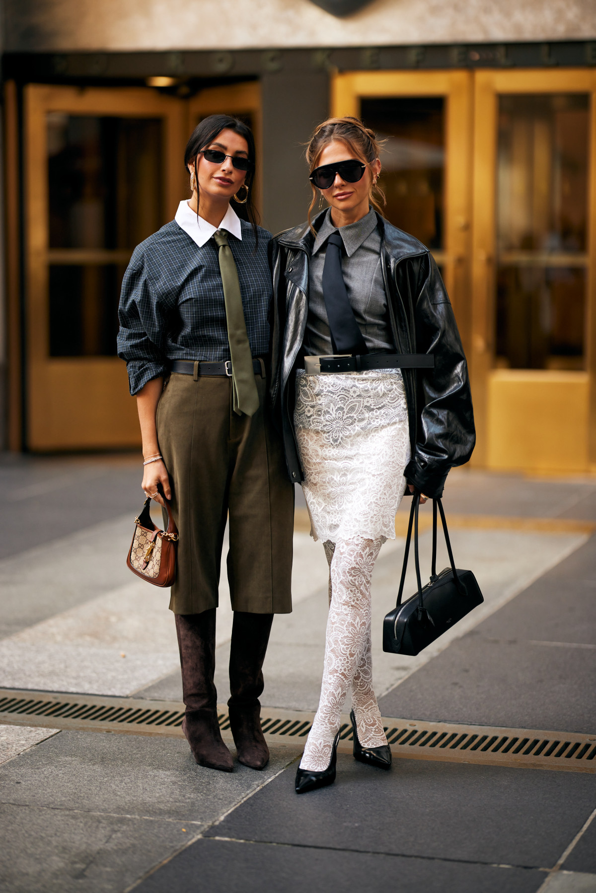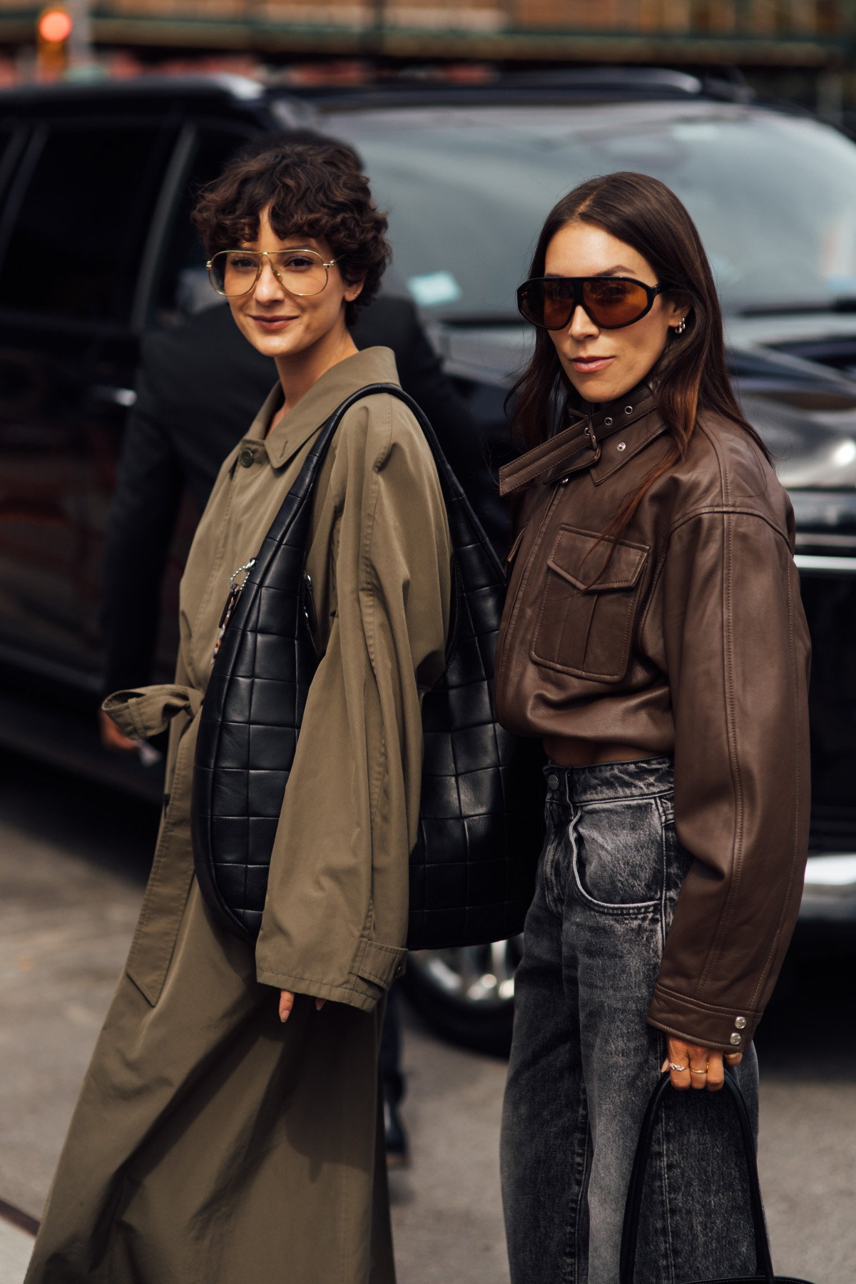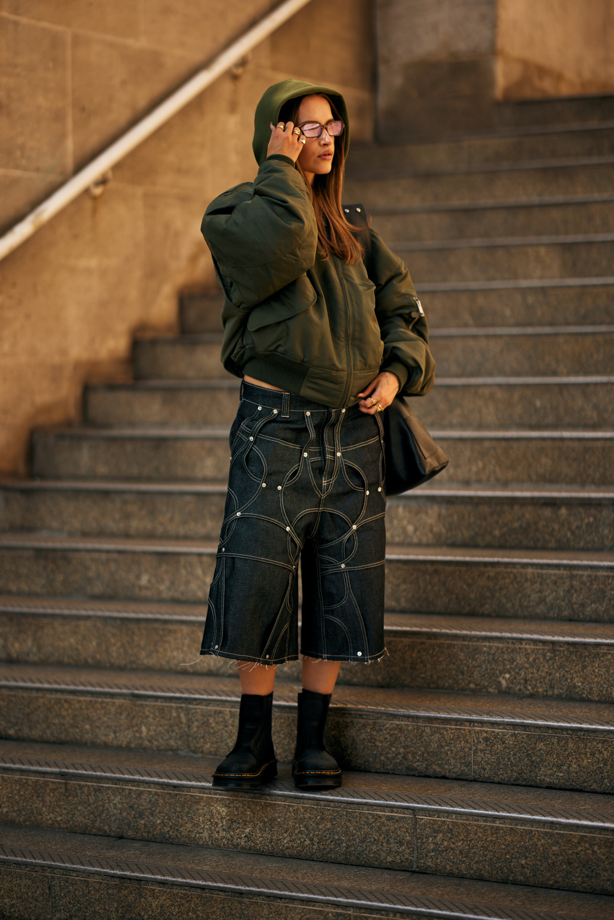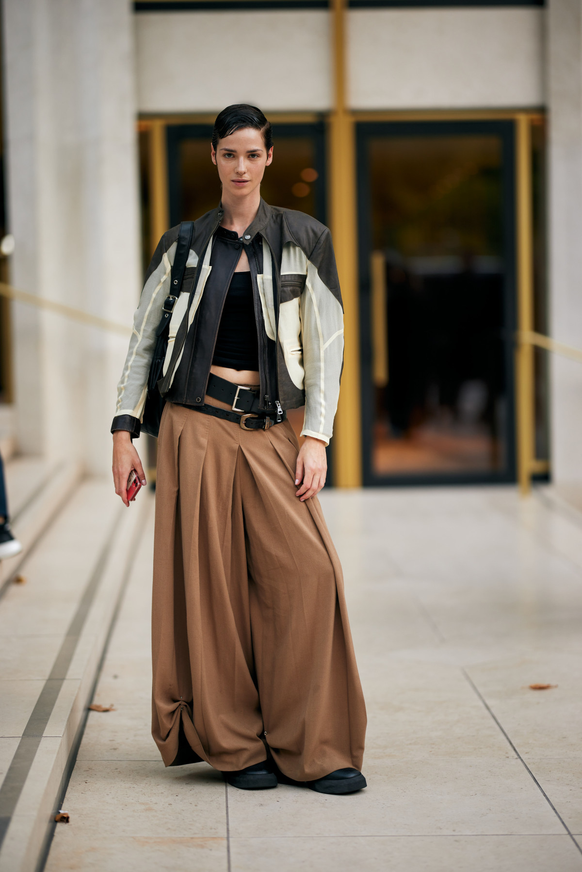 Серед фаворитів традиційно опинилися шкіряні бомбери та косухи — верхній одяг, що впродовж років уже став своєрідною класикою. Зокрема, модниці зупинилися на вільних моделях із широкими рукавами та численними кишенями, а також на дещо більш приталених варіантах, які відсилають до естетик минулих десятиліть. Їх дівчата поєднували практично з будь-яким вбранням свого гардероба — від мініспідниць та шортів до базових джинсів і класичних брюк.