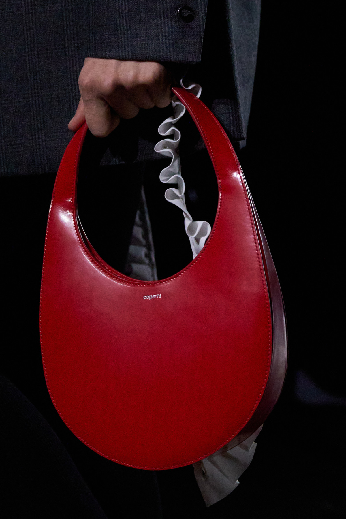 Червону суму вже можна вважати своєрідною класикою гардероба. Хоч це й доволі контрастна річ, вона здатна прикрасити практично будь-яку стилізацію — від повсякденної з джинсами до вечірньої з вишуканою сукнею. Так, N21 зробив акцент на сумці-мішечку з металевою застібкою, Coperni — на нестандартній овальній моделі, а Chanel — на масивному стьобаному клатчі.