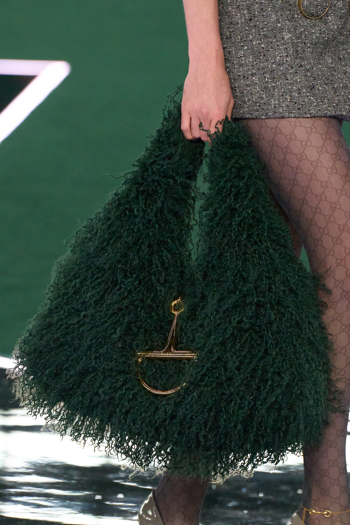 Цього сезону зелений з’явився в колекціях брендів у свіжому прочитанні — не в трав’яному, смарагдовому чи кислотному, а в благородному відтінку хвої, що нагадує про домашню ялинку на різдвяні свята. Зокрема, до нього звернулися Gucci, Prada та Lacoste, запропонувавши сумки в різних фактурах — від звичної шкіри до кучерявого хутра.