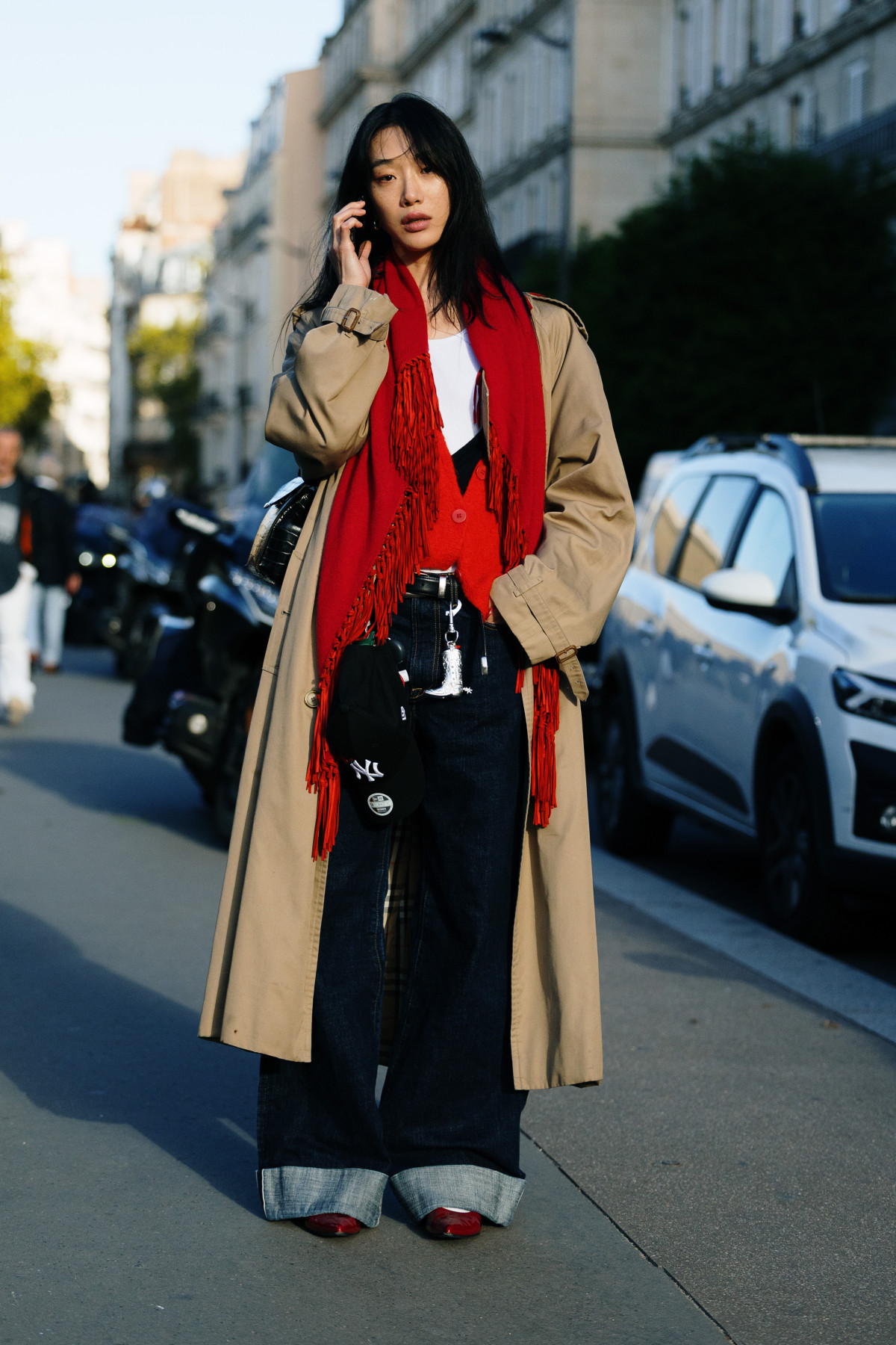 Кожну з цих пар вони поєднували з трендовим верхнім одягом: класичними пальтами, об’ємними куртками, шкіряними бомберами та шубами — а також з акцентними аксесуарами, які якраз і приковували до себе всю увагу.