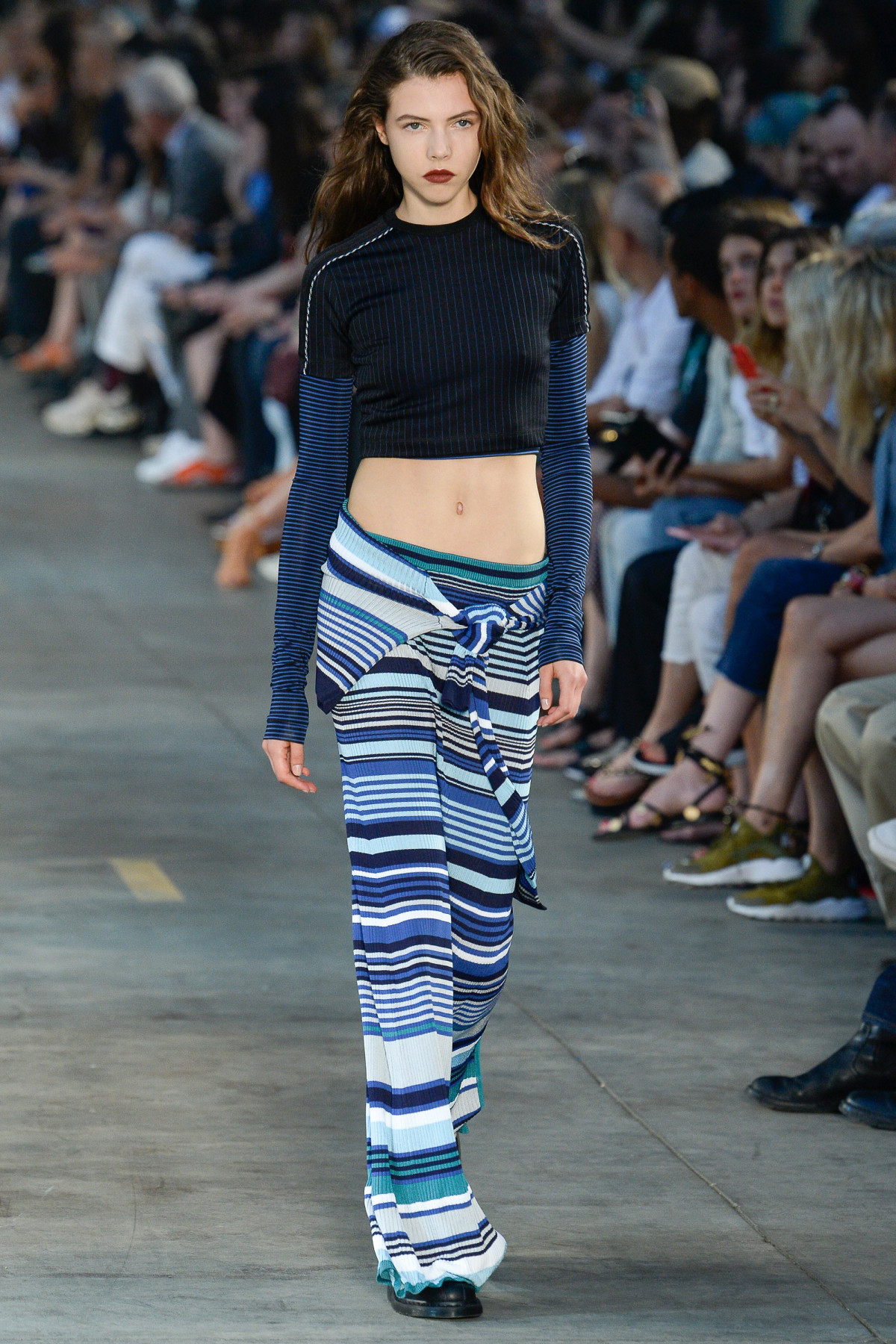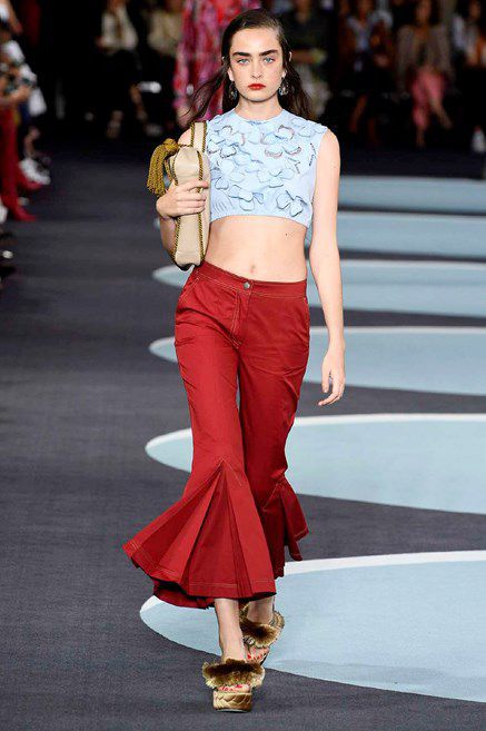 Укороченный топ и сидящие на бедрах брюки-клеш - дань хиппи 70-х и 90-х.