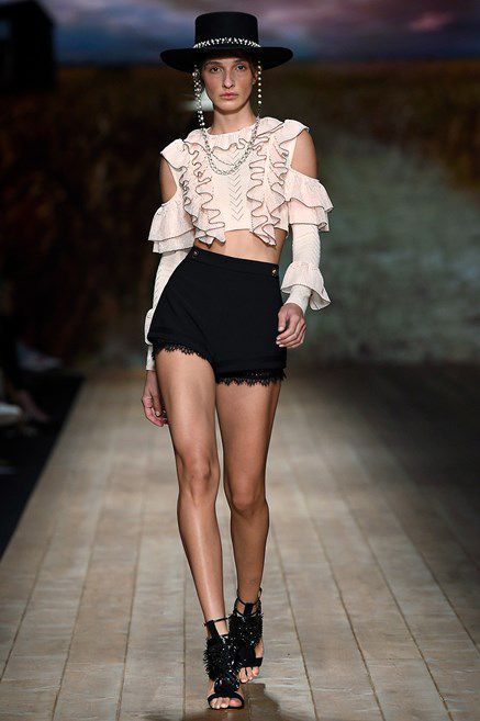 Укороченная блуза с рюшами в стилистике фламенко отлично смотрится с шортами с высокой талией.