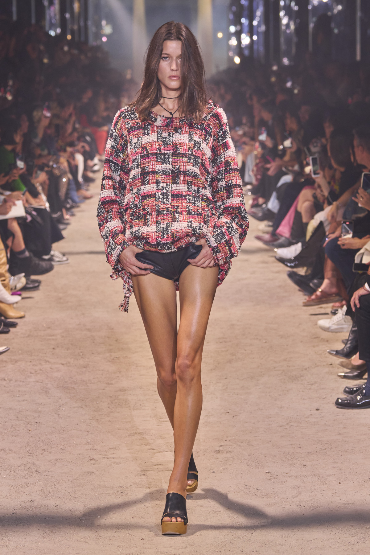 Найпопулярнішою комбінацією стали шорти + об’ємний піджак або навпаки приталений жакет. Такі варіанти ми побачили в Prada, Tom Ford, Dolce & Gabbana, Versace, Max Mara та Bally. Також можна цікаво стилізувати мікрошорти з оверсайз-худі чи светрами, що показали Gucci, Isabel Marant та Chanel. Окрім цього, не оминаємо й поєднань з іншими трендами, наприклад, із прозорими спідницями, сукнями чи блузами. Варіанти таких образів підглядаємо в Prada, Gabriella Hearst і Giambattista Valli.