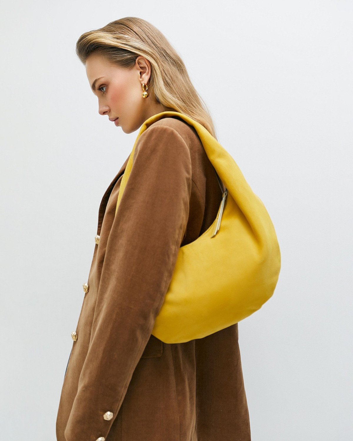 Окрім шоколадних відтінків, актуальними цього сезону є також насичений червоний та глибокий винний — стильні варіанти можна знайти у NUKOT та Kachorovska, тоді як класичний і не менш трендовий сірий представлений в одній з останніх моделей VERBENA. Якщо ж вам хочеться кольорових акцентів, зверніть увагу на жовту сумку від Laconist, яка стане яскравою цитатою літа у наступні похмурі місяці.