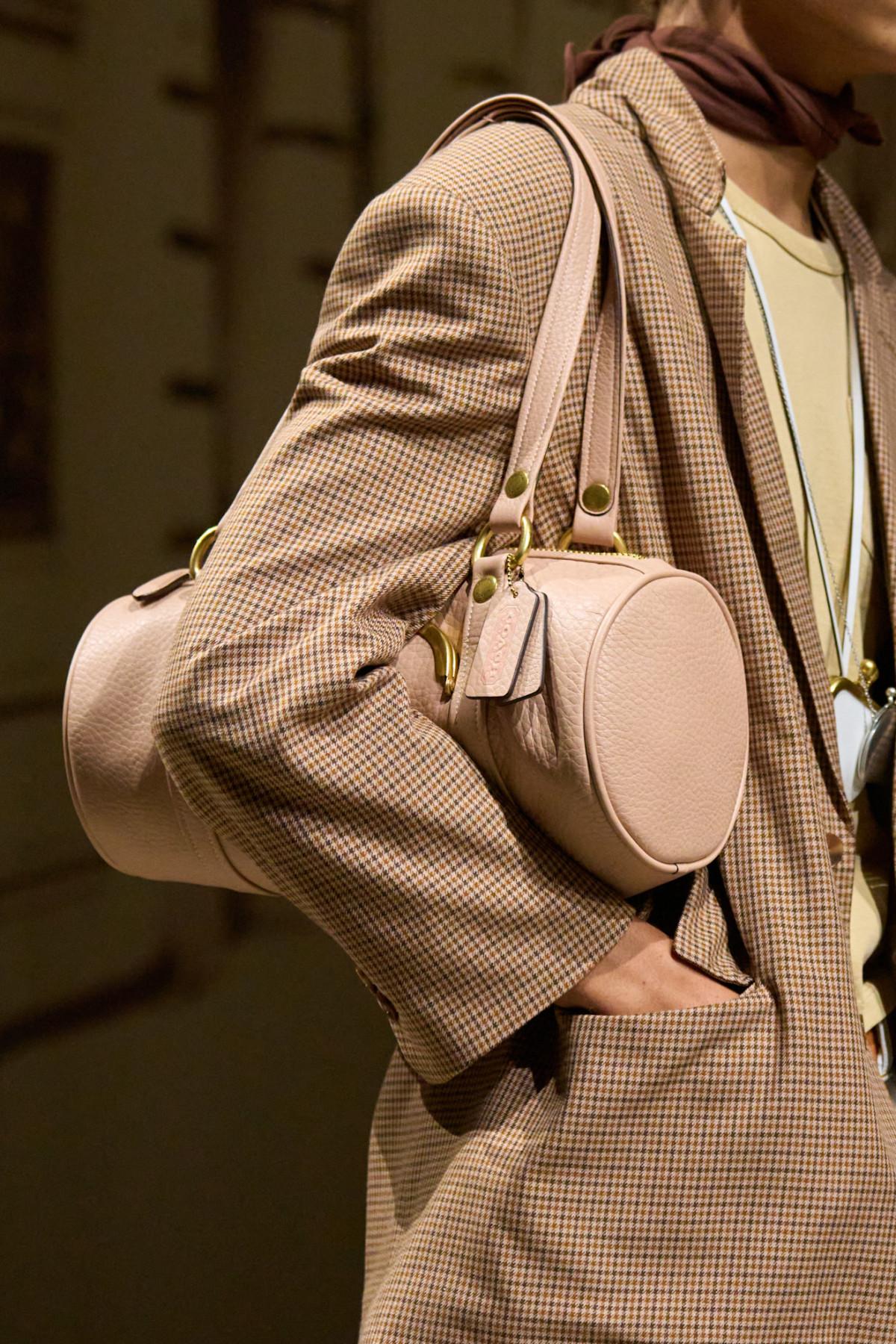 Компактні сумки-циліндри виглядають мінімалістично та акуратно, та гарно вписуються в ностальгічних тренд по 1990-х. З такою сумкою легко собі уявити Каролін Біссет-Кеннеді на вулицях Нью-Йорку.