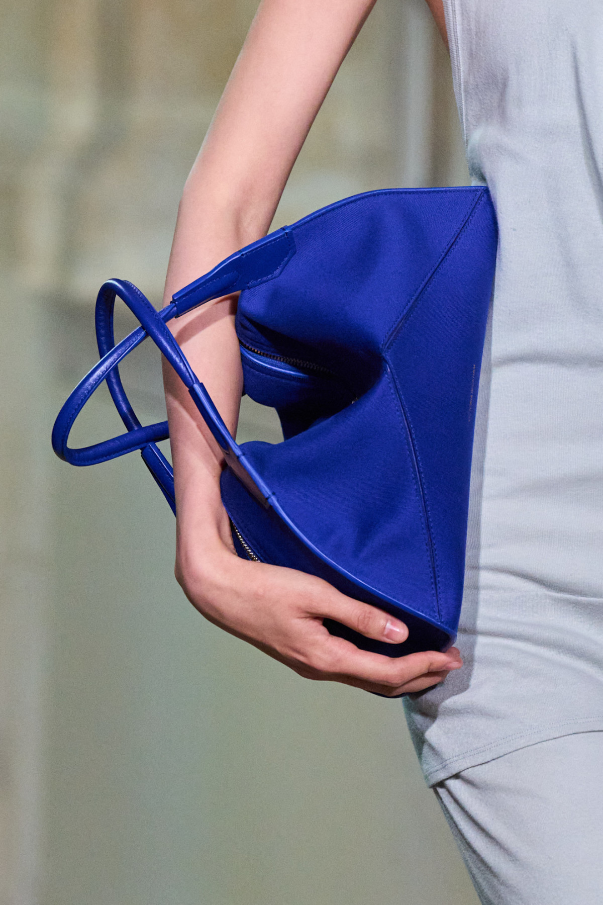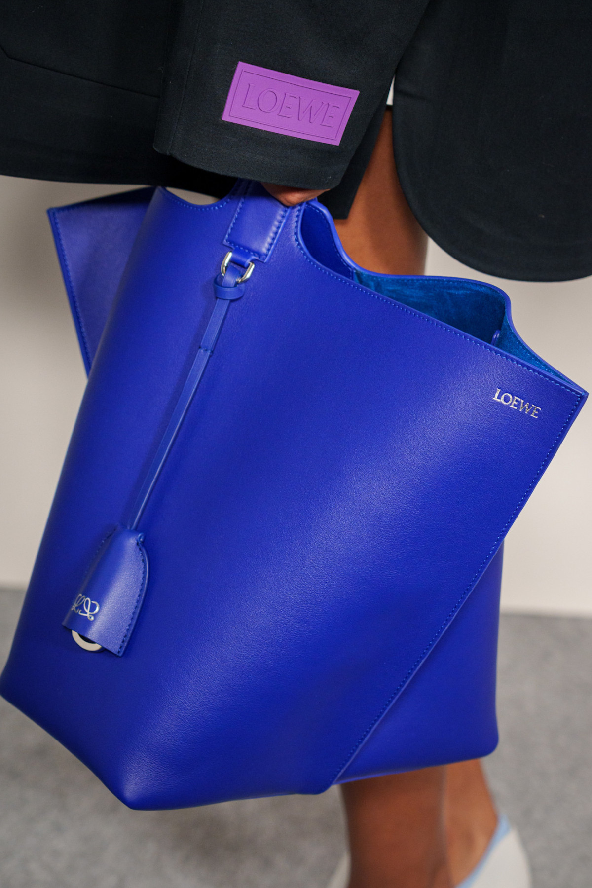 Електричний синій — небанальний колір для сумки, який миттєво привертає увагу. Така модель може стати стилеутворюючим акцентом у більш спокійному монохромному образі, як у Celine, або ж частиною актуального колор-блоку, як у Dries Van Noten. Основним матеріалом для сумок у цьому відтінку цього сезону стає замша — м’яка текстура ще більше підсилює глибину та насиченість кольору.