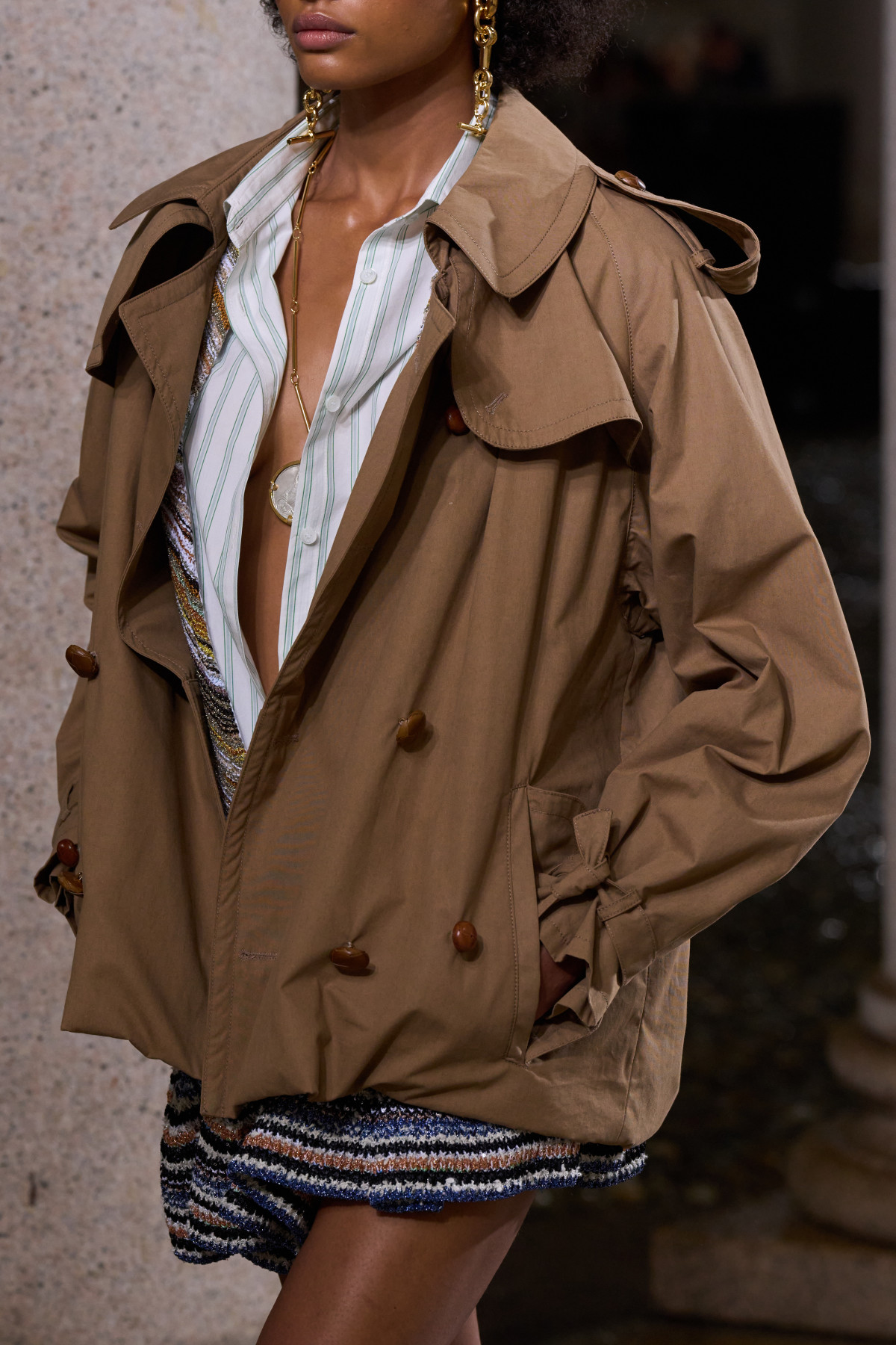 Здебільшого нові колекції брендів поповнилися класичними тренчами в нейтральних відтінках. Toteme запропонував світлий молочний вільного крою, Maison Margiela — бежевий з опущеним поясом, а Celine — чорний з акцентною лінією талії.