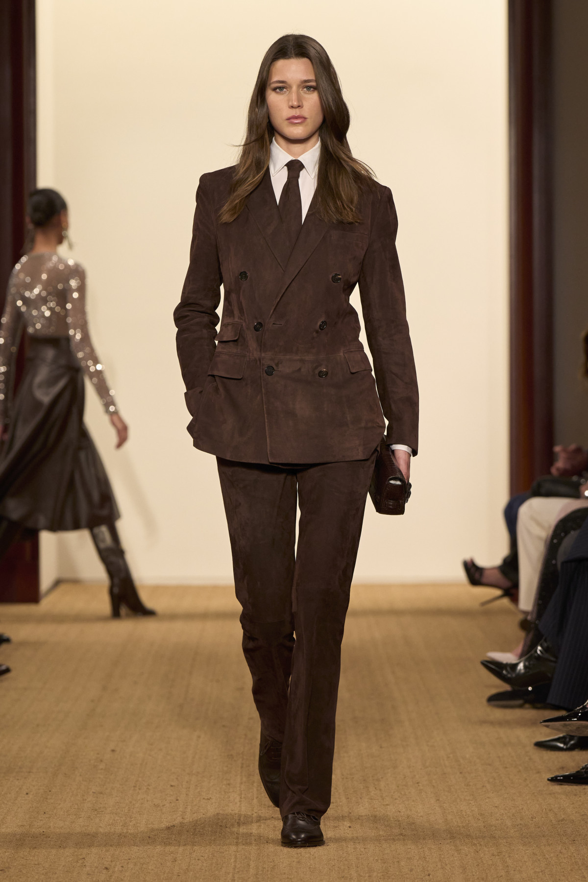 У колекціях світових брендів осінь-зима — 2024/25 він з’явився в різноманітних варіаціях та поєднаннях. Безперечно, найпоширенішим тандемом на подіумах стали брючні костюми-двійки. Зокрема, їх показали Ralph Lauren, який зосередився на замшевому матеріалі й популярному в прийдешньому сезоні коричневому відтінку, Chanel, що традиційно зупинився на твіді й картатому принті, а також Schiaparelli, Stella McCartney та Ujoh, які не оминули увагою маскулінні об’ємні моделі. Інші ж бренди, як-от Carven, Victoria Beckham, Coperni, Miu Miu та Hermes поєднали власні масивні блейзери з мідіспідницями приталеного крою або, навпаки, плісированими A-силуету, мінішортами, джинсами, брюками та довгими светрами.