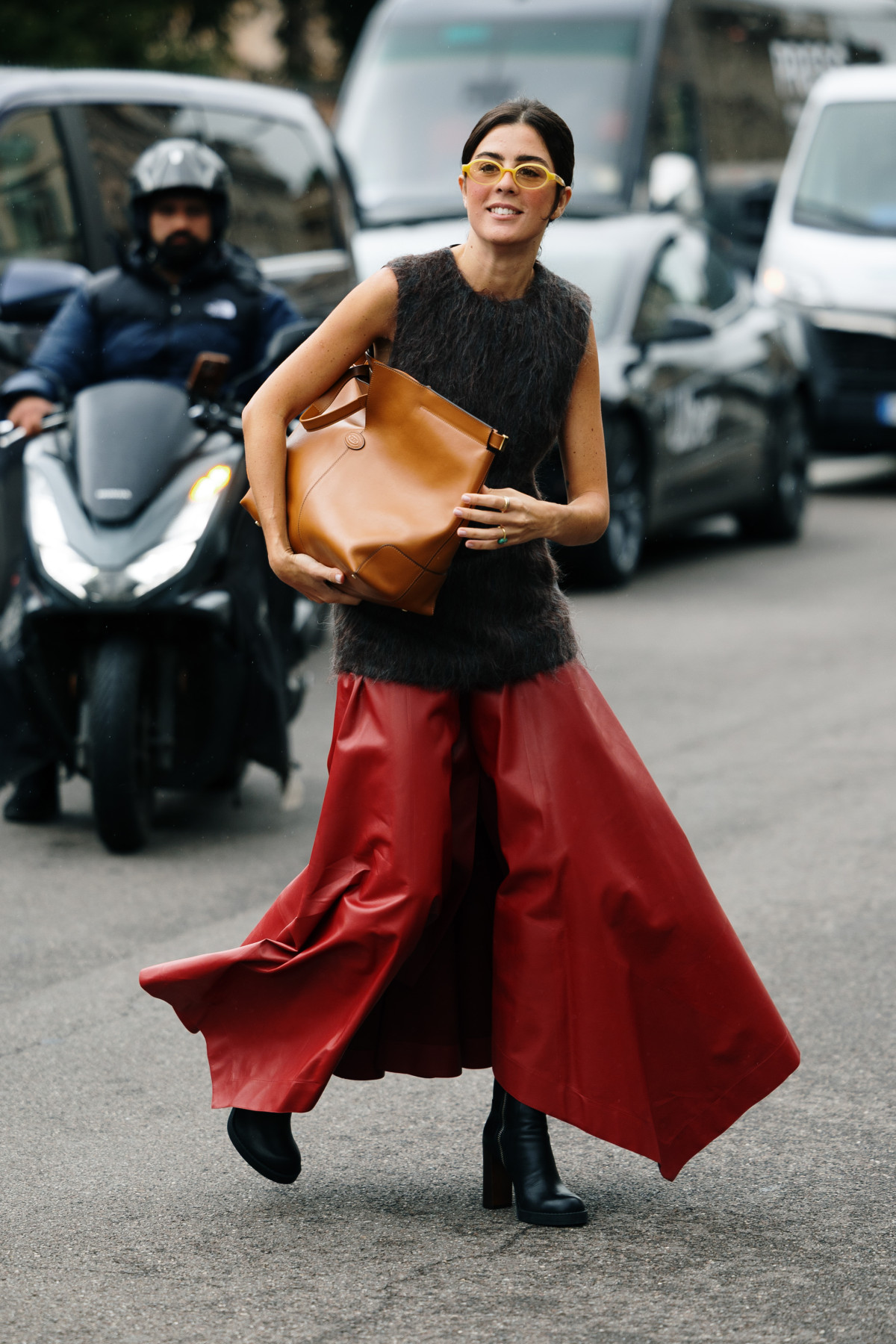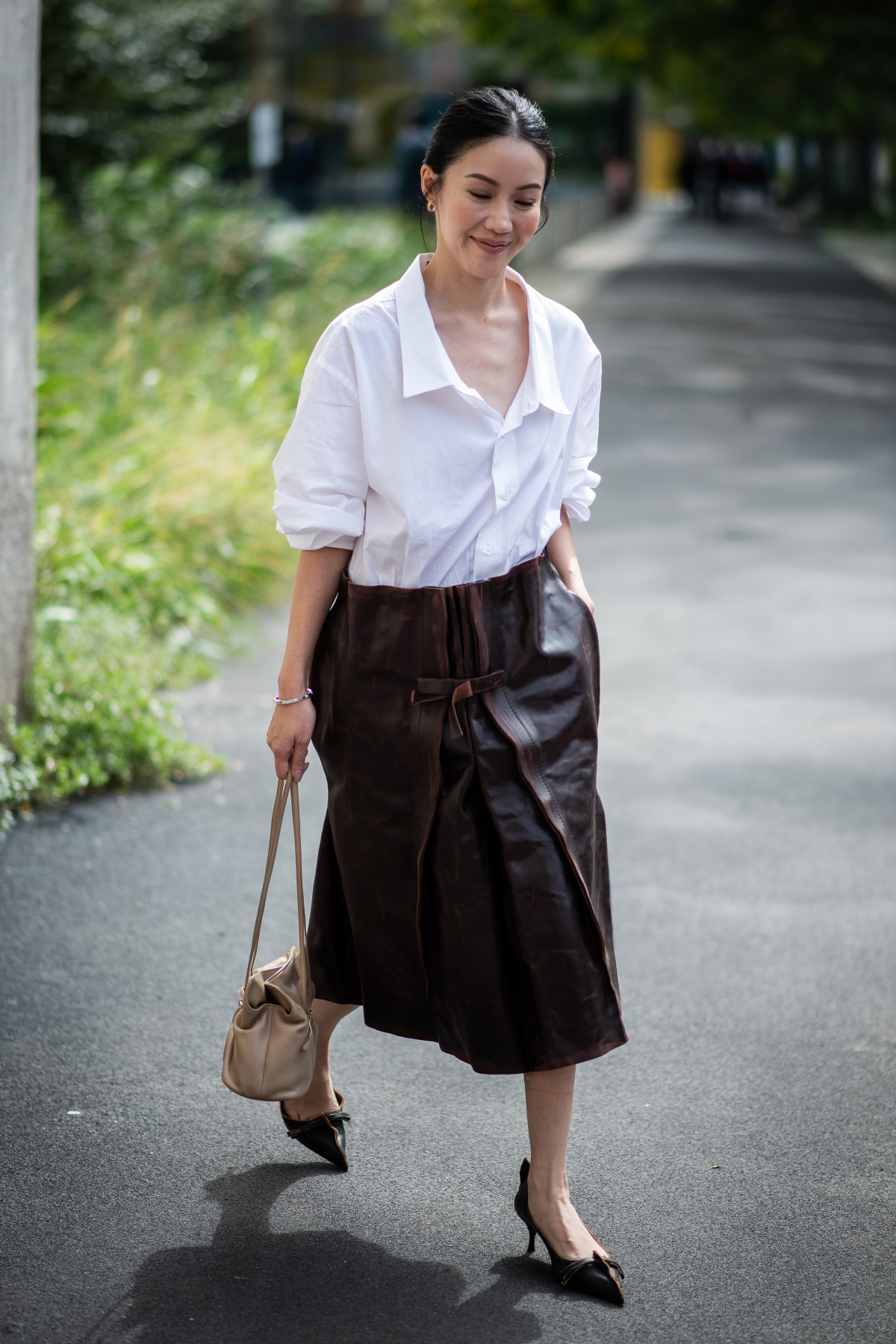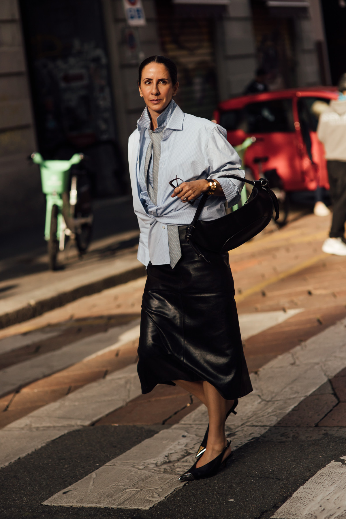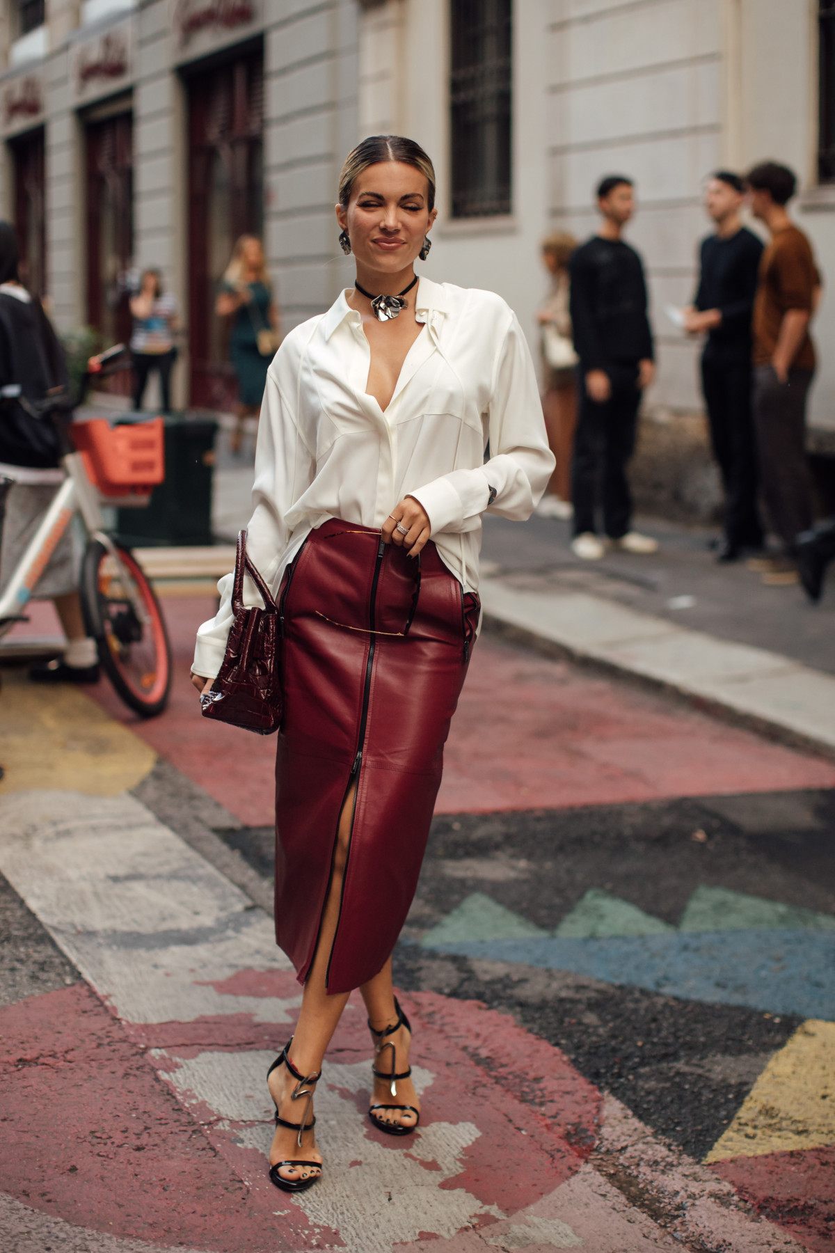 Зокрема, найчастіше модниці вдавалися до образів в естетиці office core, стилізуючи спідницю прямого крою із сорочками, жакетами та краватками. Окрім цього, серед поєднань також з’являлися формули з трикотажними светрами, шовковими блузами та утилітарними куртками. Ну і, звісно ж, не обійшлося без total looks, всуціль зіставлених зі шкіряних елементів.