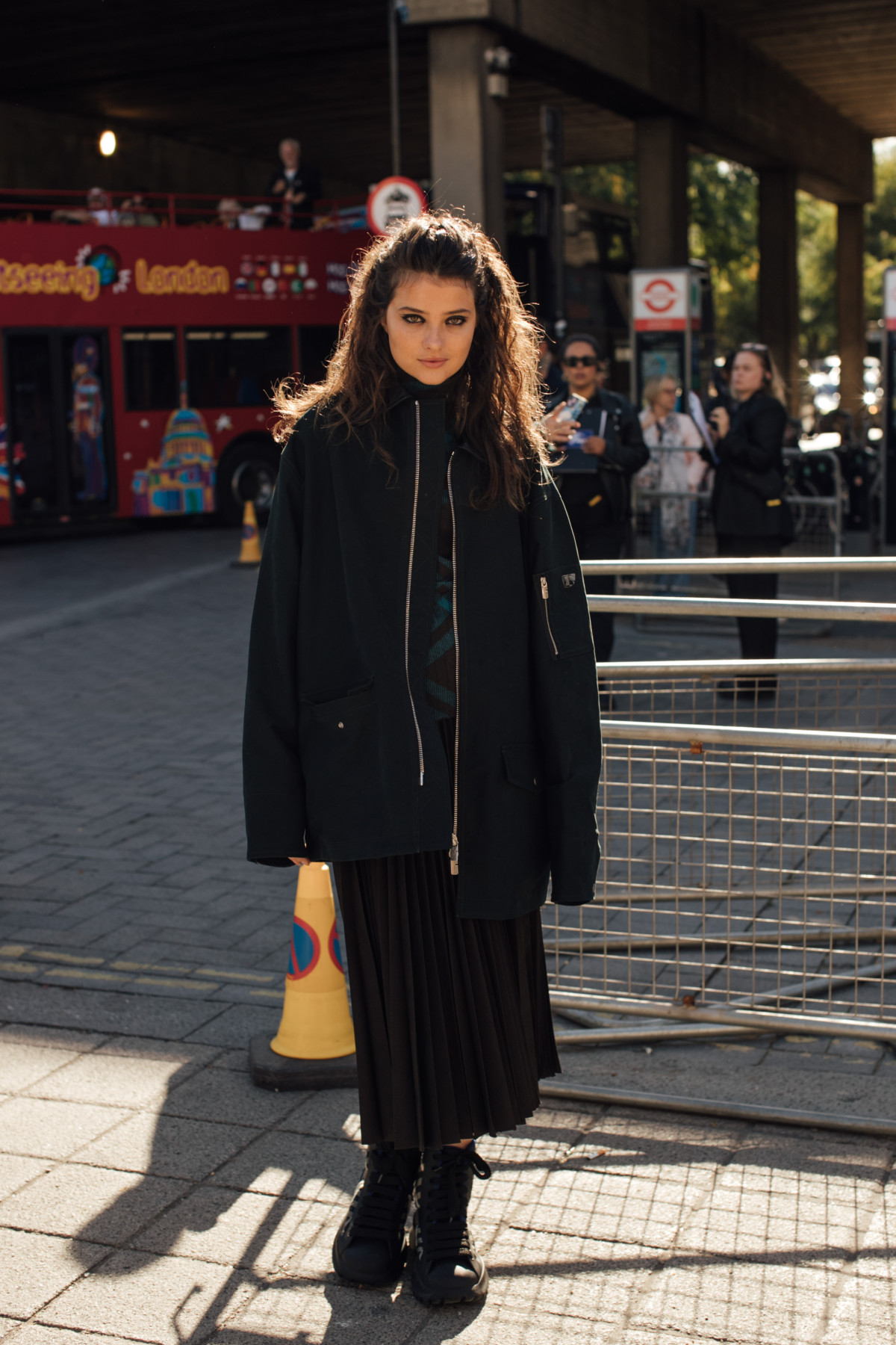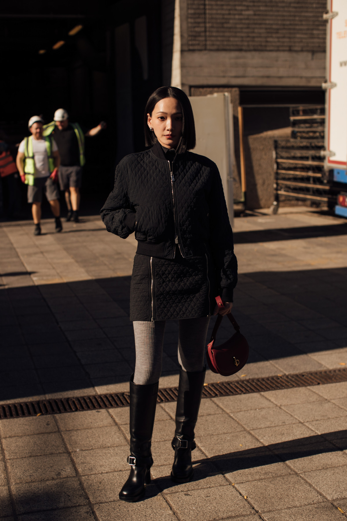 Серед верхнього одягу, що став фаворитом дівчат у прохолодну пору, — пальта максідовжини з кишенями, вінтажні шкіряні куртки, подовжені бомбери та блейзери в естетиці officecore. Їх streetstyle-зірки доповнювали елегантними брючними костюмами, плісированими спідницями та напівпрозорими мереживними сукнями. Акценти стилізацій переважно відображалися в аксесуарах — картатих беретах, високих рукавичках, сонцезахисних окулярах, ременях із металевими пряжками та прикрасах. З фактур модниці найчастіше обирали шкіру та денім.