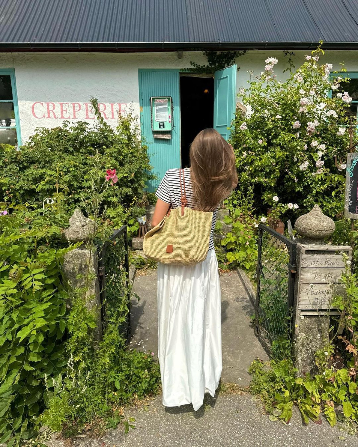 З взуттям тут теж усе просто: зупиняйтеся на високих ковбойках, як-от американські та скандинавські блогерки, або створюйте комбінації з більш літніми моделями — в’єтнамками чи клогами. Серед аксесуарів придивіться до плетених сумок, кошиків, солом’яних капелюхів і косинок.