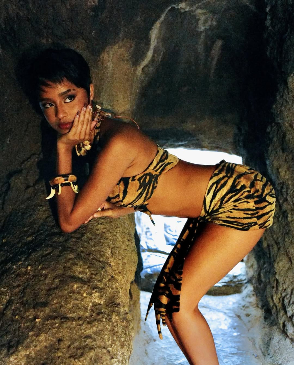 Tyla в костюмі Шерон Стоун із «Флінстоунів»