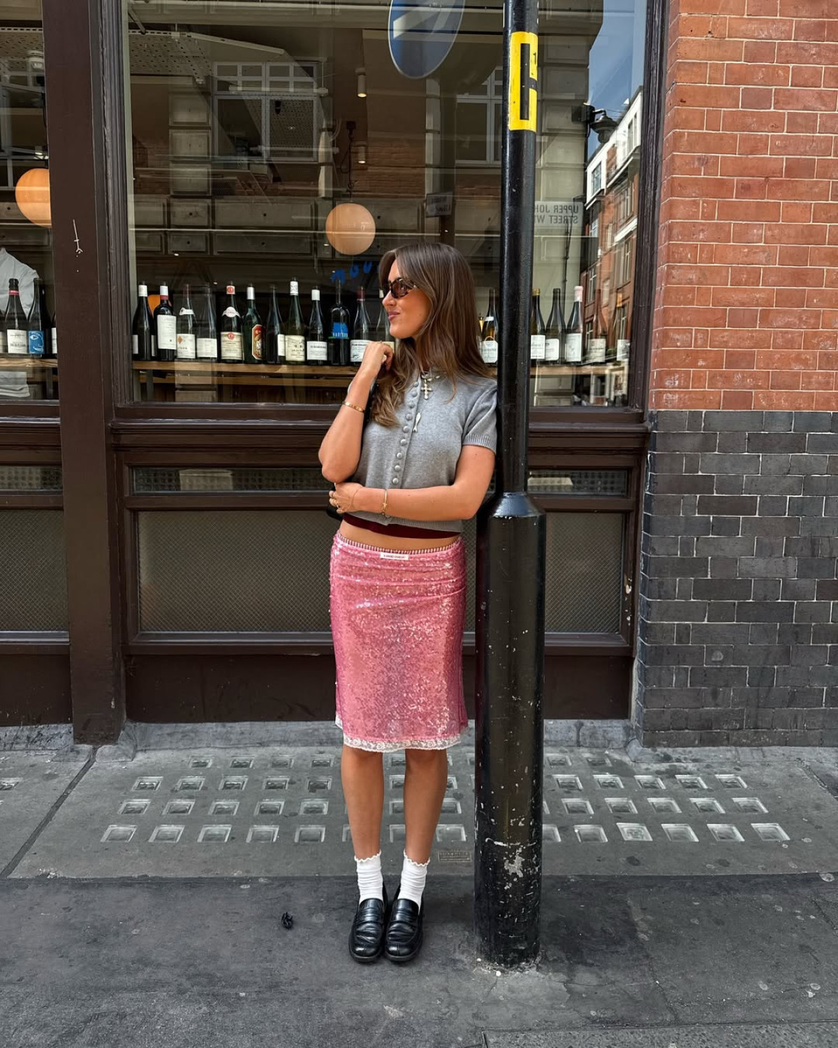 Ще один тренд — сяйливі спідниці з лелітками або кристалами, які, здавалося б, призначені суто для вечірок або інших святкових подій. Утім, сьогодні модниці сміливо інтегрують подібні варіанти й у денні образи, комбінуючи їх із базовими топами, оверсайз-сорочками та кардиганами. Це дозволяє створювати ефект невимушеного гламуру, коли сяйво не перенавантажує поєднання, а, навпаки, підкреслює його виразним акцентом. До того ж такі спідниці пасують до кросівок не гірше, ніж до босоніжок.