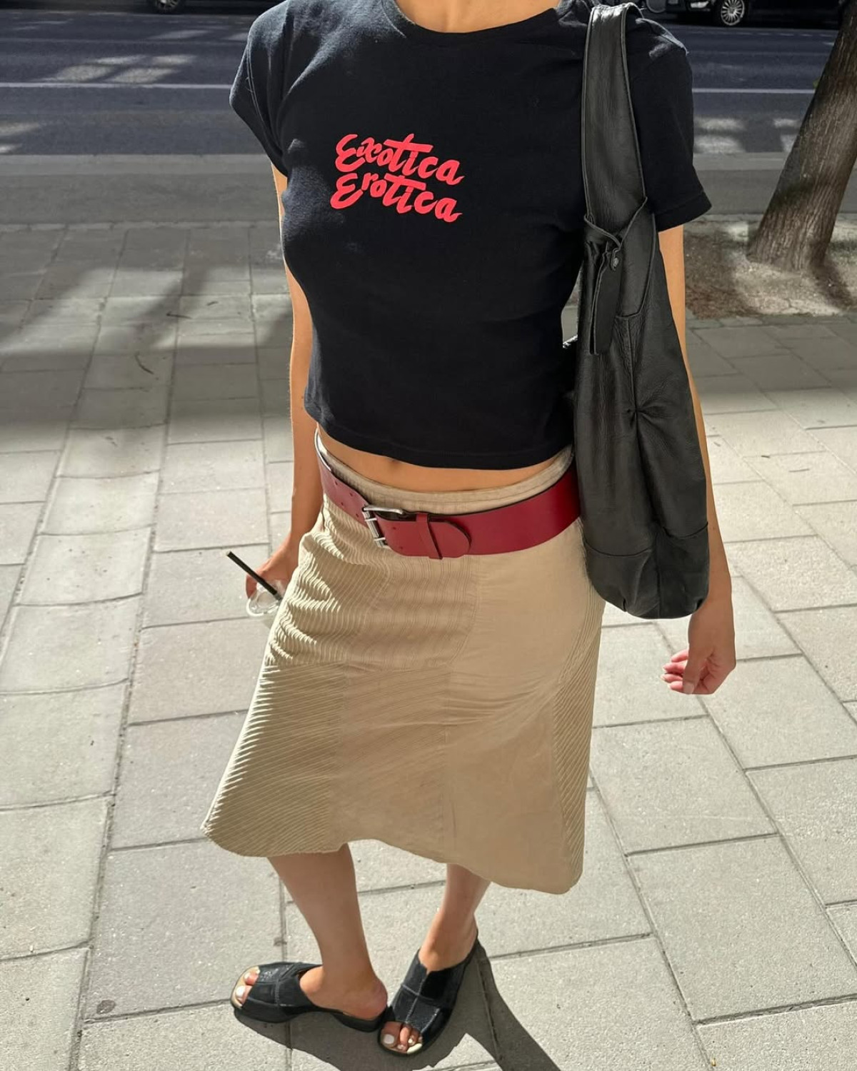 І нарешті — довжина. Найактуальніший варіант цього літа — спідниці до коліна. Вони якнайкраще відображають хвилю ностальгії за минулими модними епохами, виглядають стримано, але не нудно. Окрім цього, дозволяють експериментувати зі стилізаціями — від офісного шику до streetstyle-варіацій з лонгслівами, кроп-топами та кросівками.