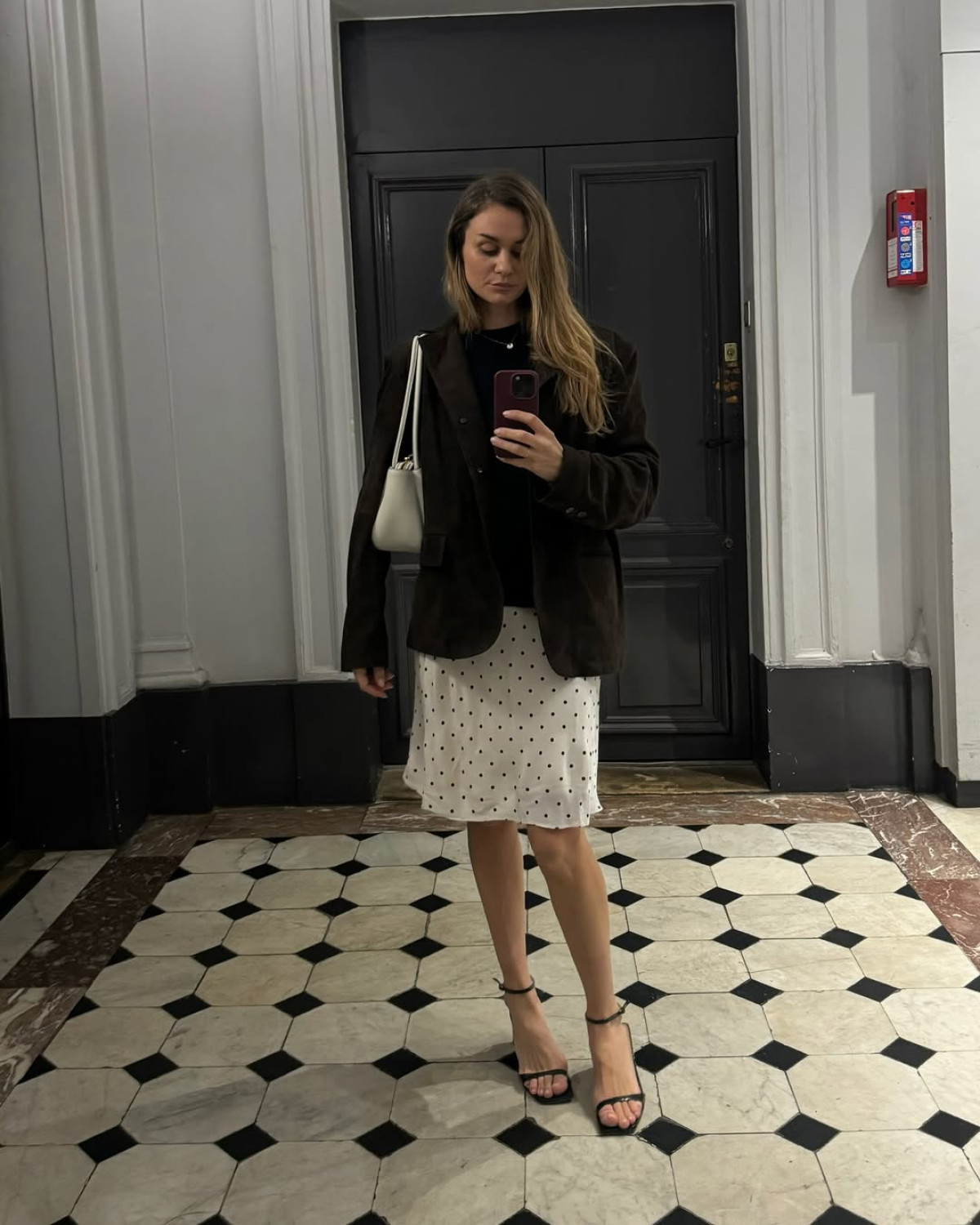 Наостанок ще одна стильна опція — спідниці у принті polka dot. Гороховий візерунок знову опинився на піку популярності, тож ми не могли не звернути увагу й на нього. Особливо актуальними стануть варіанти у чорно-білому виконанні, контрастному червоному або ж жовтому, моделі з асиметричним кроєм або багатошарові у комбінації з іншими спідницями чи штанами.