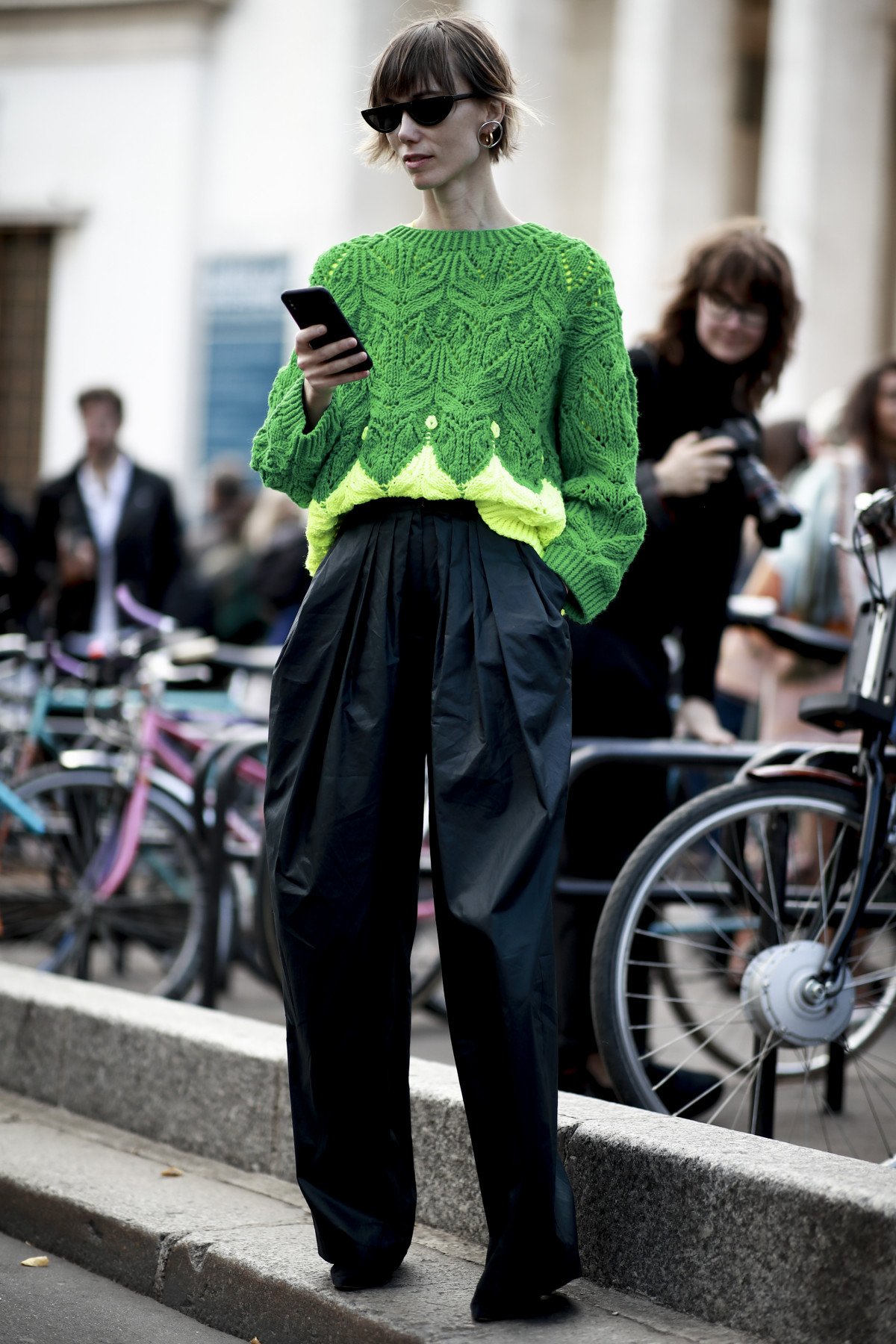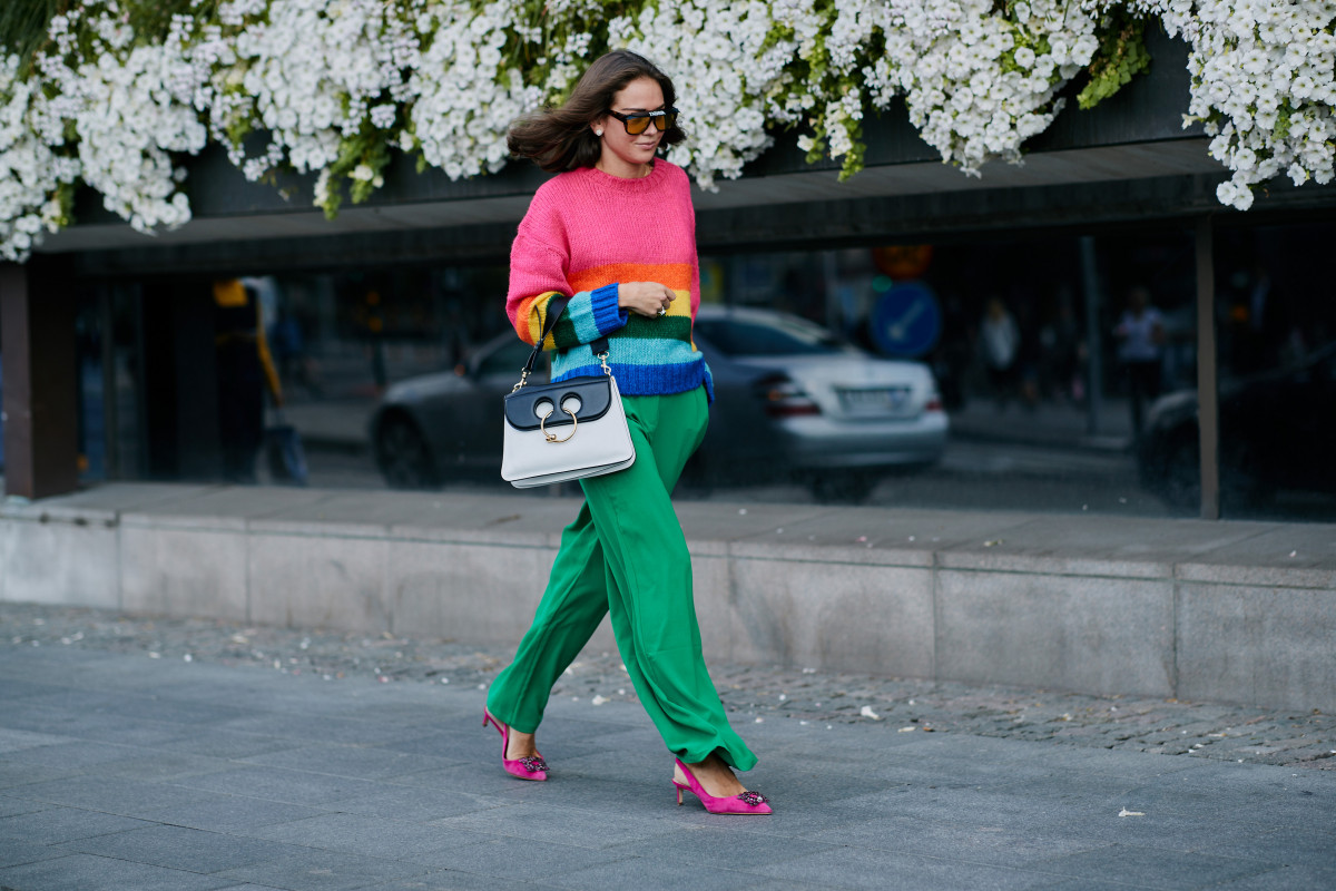 Цвет, цвет, цвет! Этой осенью стоит решиться на яркий элемент в гардеробе, уступая своей любви к черному, серому и другим нейтральным оттенкам. Пусть это будет свитер: самый простой способ добавить цвета, даже если вы не профессионал в вопросах колористики. Кроме того, этот пусть выбрали звезды street style, а ведь именно они быстрее всего улавливают микро-тенденции. С принтом или без, объемный или по фигуре: свитер может быть любым, равно как и его цвет: апельсиновый, изумрудный, пастельный розовый, фуксия или лайм. Поле для экспериментов безгранично: носите хоть с moms jeans, хоть с классическими брюками, хоть поверх платья или с юбкой-макси.