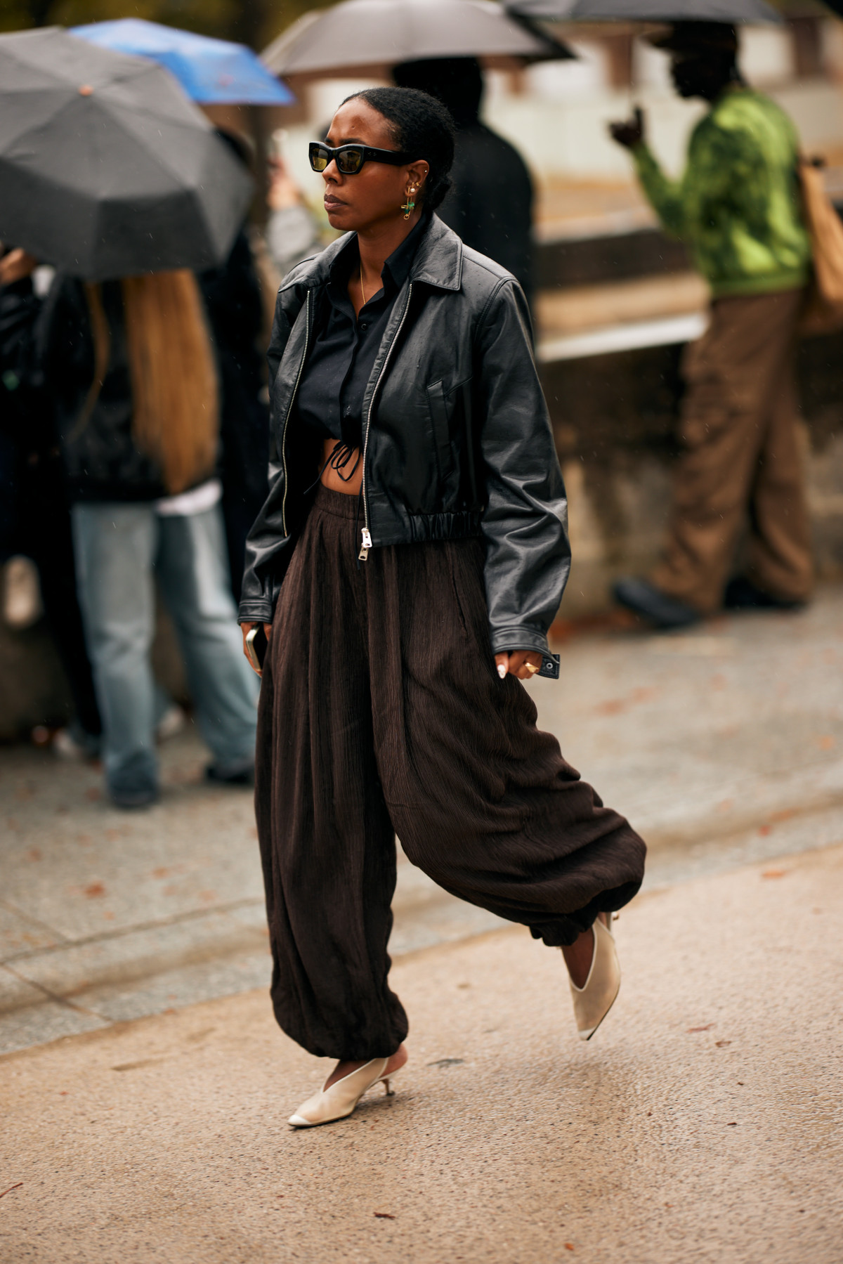 Утім, лише строгими й структурованими формами fashion-інфлюенсерки не обмежилися. Вони вкотре довели, що один із найефектніших способів «розкрити» шкіряну куртку — це зіграти на контрастах. Наприклад, поєднати її з ніжною мереживною спідницею або шовковим топом, створивши розбіжність між м’якою витонченою естетикою і бунтарськими нотками.