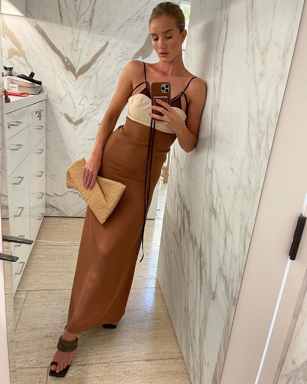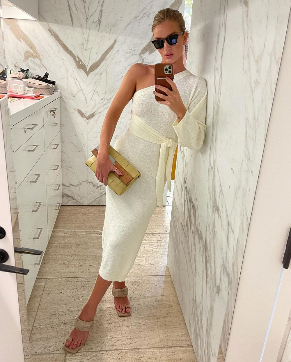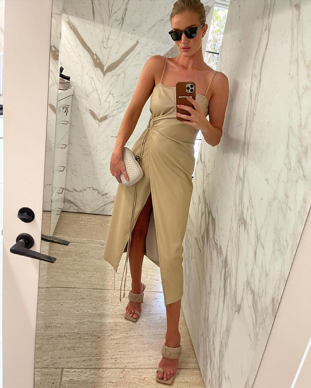 Роузи Хантингтон-Уайтли знает, что будет носить каждая модница в сезоне весна-лета. Своими модными находками и идеями их стилизации супермодель делится в своем Instagram. По традиции Роузи опубликовала серию снимков в базовых нарядах на каждый день. Так, большую часть весенне-летнего гардероба звезды составляют вещи от бренда Bottega Veneta. Кроме того, в этом сезоне Хантингтон-Уайтли отдает предпочтение платьям разнообразного калибра — от обтягивающих моделей до уютных вариантов длины ниже колена. Не изменяет Роузи и любимой цветовой палитре: вся одежда выполнена в оттенках бежевого, коричневого и молочного. Все образы знаменитая девушка сочетала с обувью, которую создала в коллаборации с брендом Gia Couture.