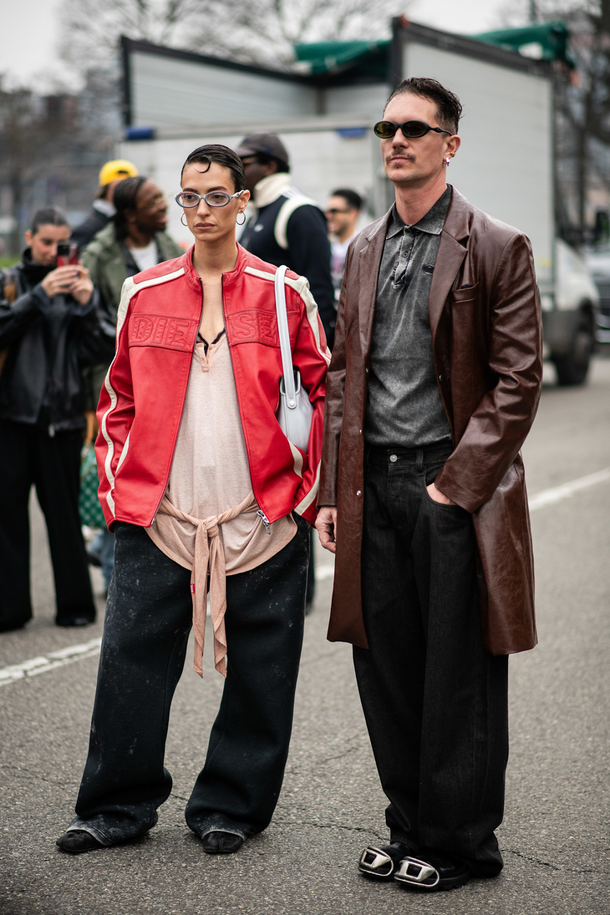 На вулицях під час Міланського тижня моди можна було побачити досить багато пар, які були не проти опинитися перед об’єктивами стрітстайл-фотографів.