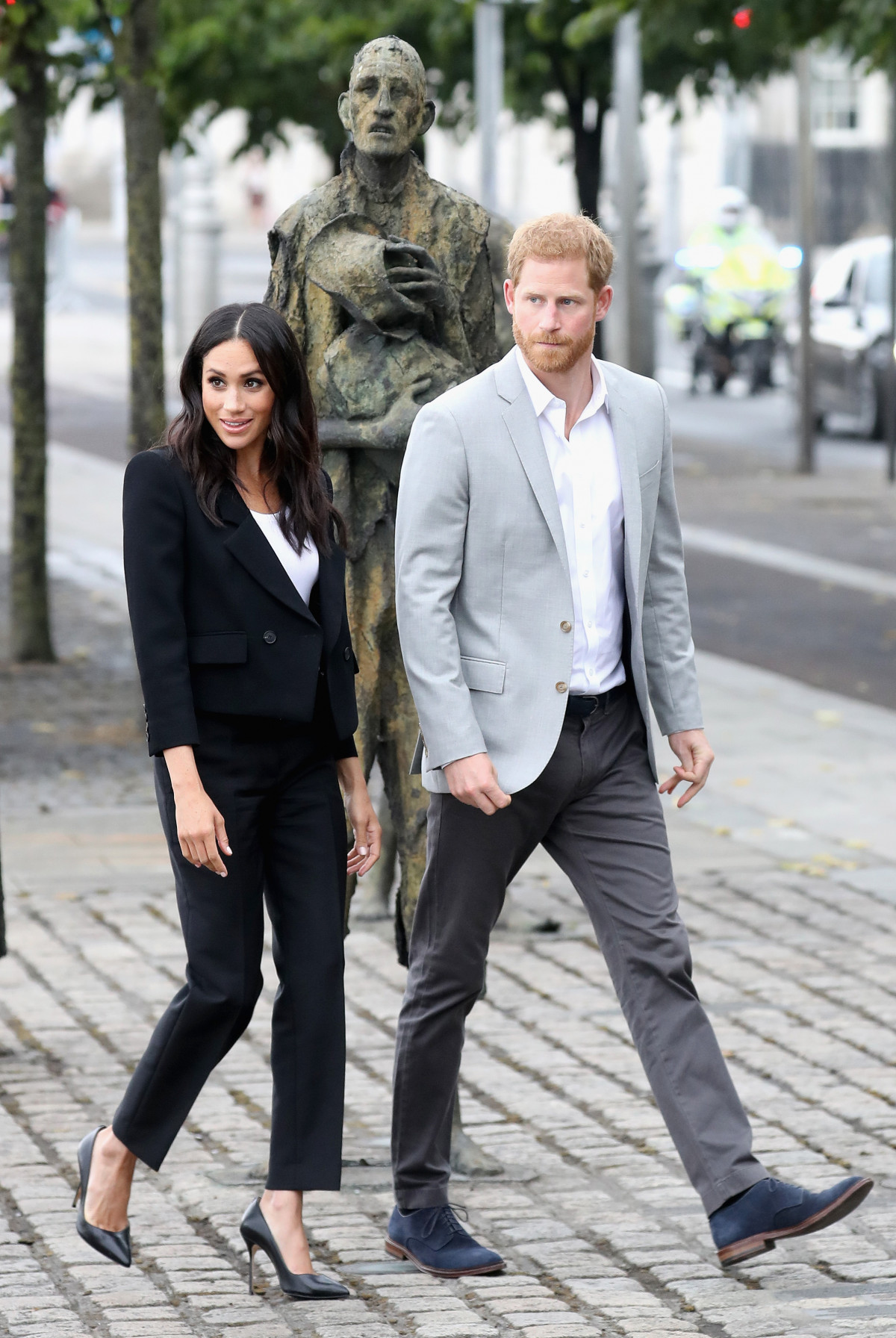 Согласно сообщениям в СМИ, принц Гарри запрещает Меган Маркл носить смокинг. Но герцогиня Сассекская любит нарушать правила. Поэтому в последнее время мы часто видим ее в костюмах. Более того – ее эффектные наряды вдохновляют на покупки женщин со всего мира.