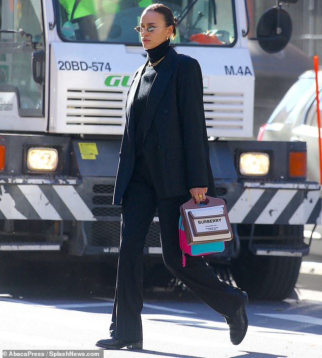На днях Ирина Шейк была замечена на прогулке в Нью-Йорке в классическом костюме от украинского бренда Olenich. Образ модель дополнила черной водолазкой, ботинками на устойчивом каблуке, солнцезащитными очками и сумкой Burberry.