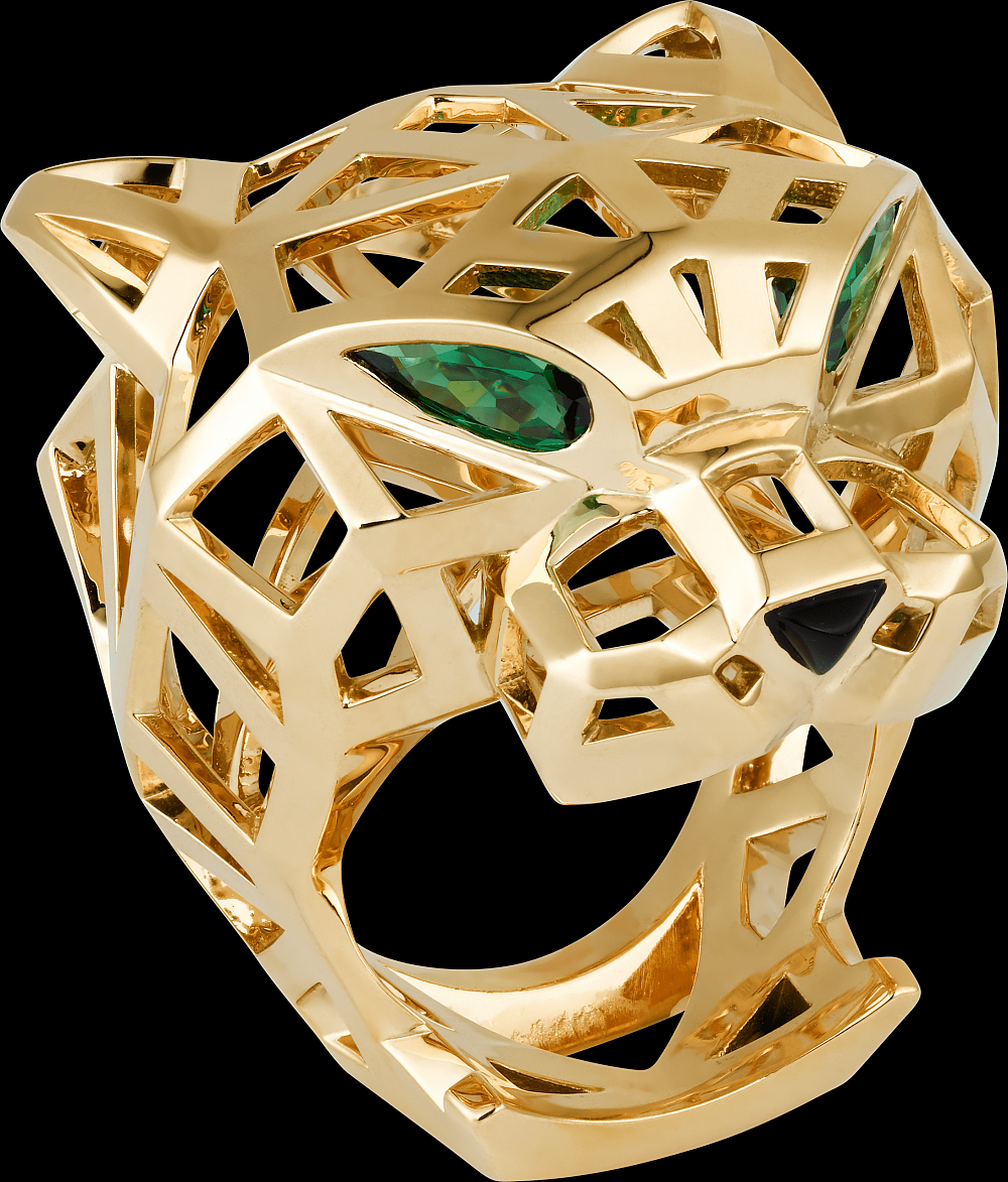 Кольцо Panthere de Cartier, желтое золото, оникс, гранат-цаворит