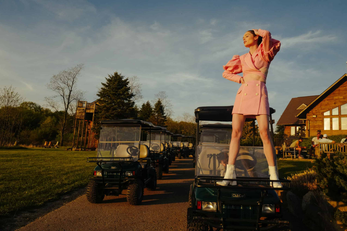 На днях Коко Роша появилась в костюме от Marianna Senchina на outdoors-ивенте в Пенсильвании. Модель позировала фотографам в нежно-розовом льняном укороченном жакете и мини-юбке в тон. Вся коллекция бренда стилистически вдохновлена 60-ми годами, а рукава-буфы и нестандартные вырезы — знаковые приемы Марианны — встречаются практически во всех ее коллекциях.