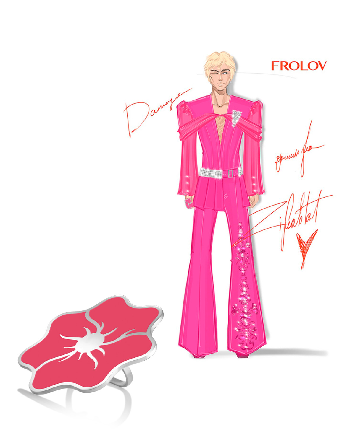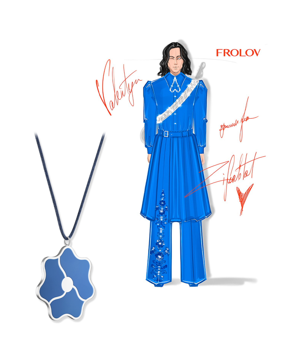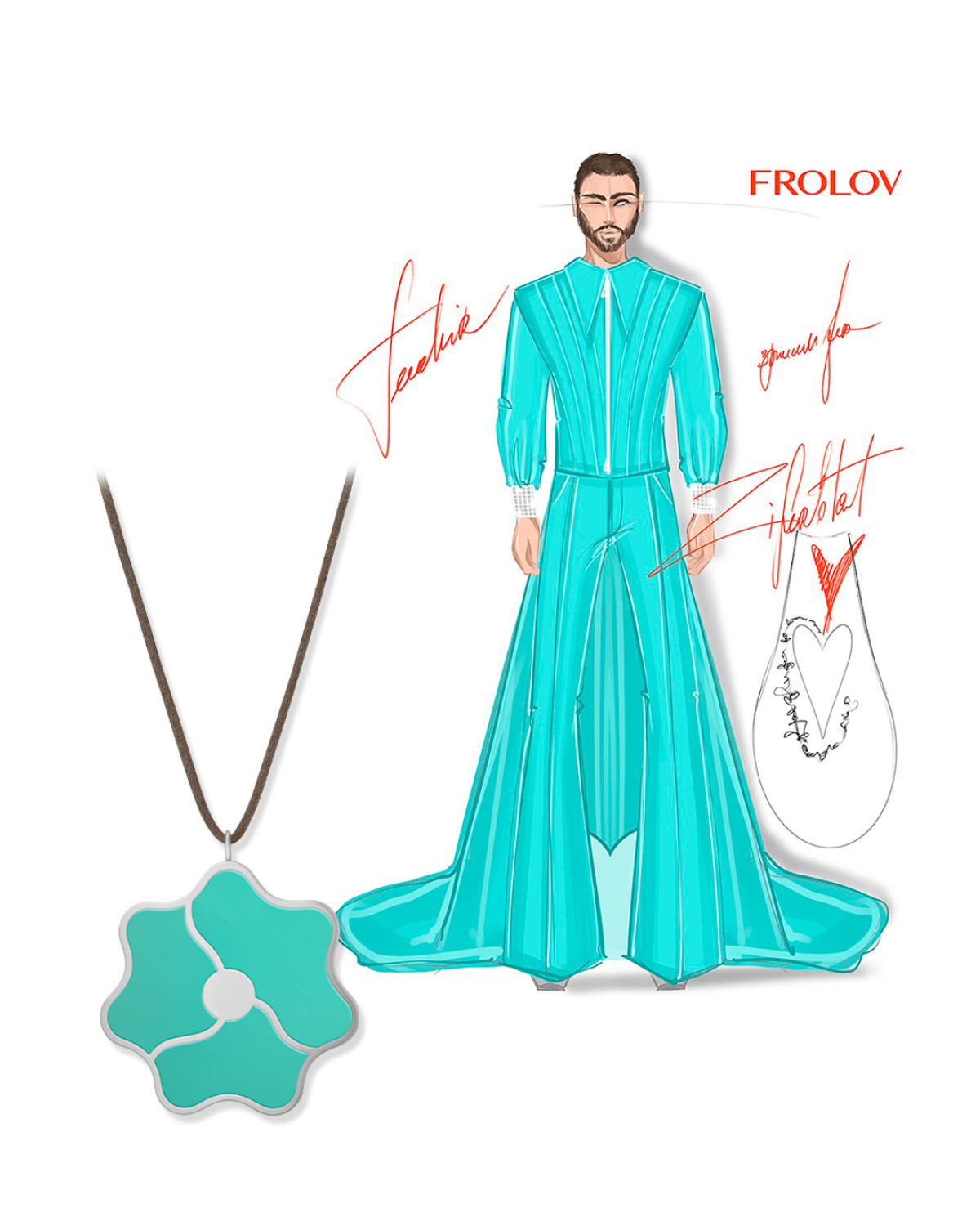 Доповненням до костюмів стали унікальні прикраси, створені ювелірним домом SOVA у співпраці з Іваном Фроловим. Кожна прикраса виготовлена вручну зі срібла і покрита яскравою емаллю — малиновою, синьою та бірюзовою, що гармонійно поєднується з палітрою костюмів. На звороті прикрас — гравіювання логотипів SOVA, FROLOV і Ziferblat як знак творчої єдності та унікальної колаборації.