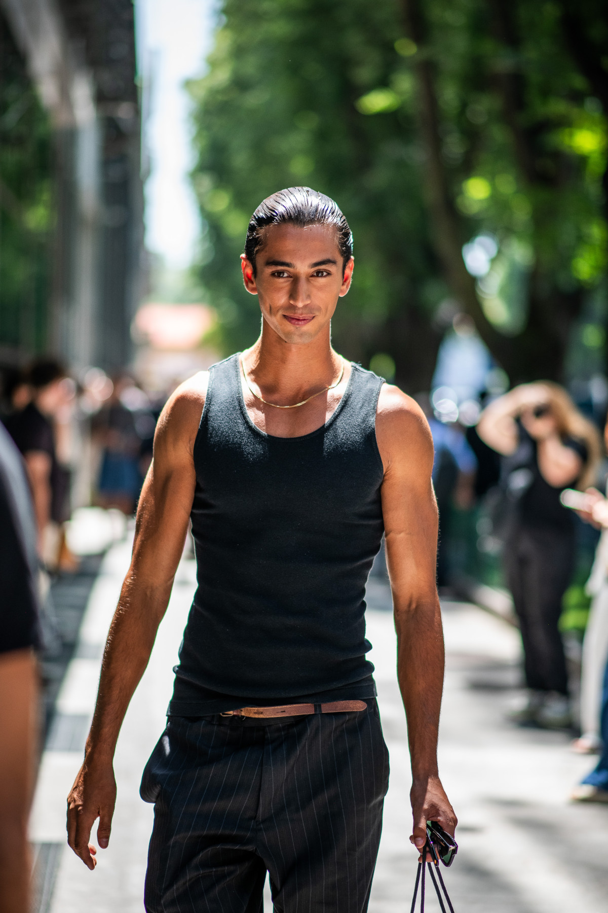 Окрім цього, помітними стилістичними рішеннями стали універсальні формули з майками та брюками. Жодних зайвих деталей — лише акцент на лаконічність, комфорт і виразний силует. Така простота наповнила образи невимушеністю й зберегла баланс між трендовістю та функціональністю.