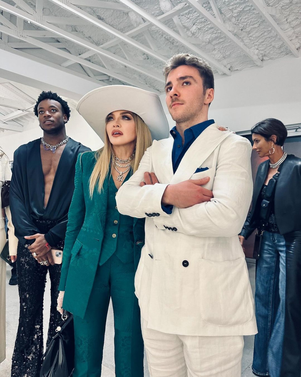 Український дизайнер Руслан Багінський має всі шанси стати одним з головних модних ньюзмейкерів цього тижня. Тільки вчора ми писали про те, що він виготовив капелюшки для королеви Великої Британії та принцеси Уельської Кейт Міддлтон, в які заклав особливі сенси. А сьогодні стало відомо, що в аксесуарі Ruslan Baginskiy в об’єктиви фотографів потрапила інша зірка — Мадонна. Американська співачка відвідала виставку свого сина, Рокко Річі. З цієї нагоди вона обрала смарагдовий костюм-трійку, який доповнила білосніжними черевиками, рукавичками з мережива та ковбойським капелюхом від українського дизайнера.