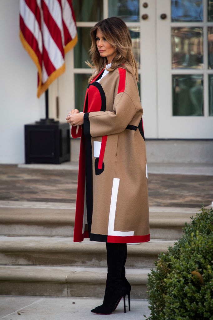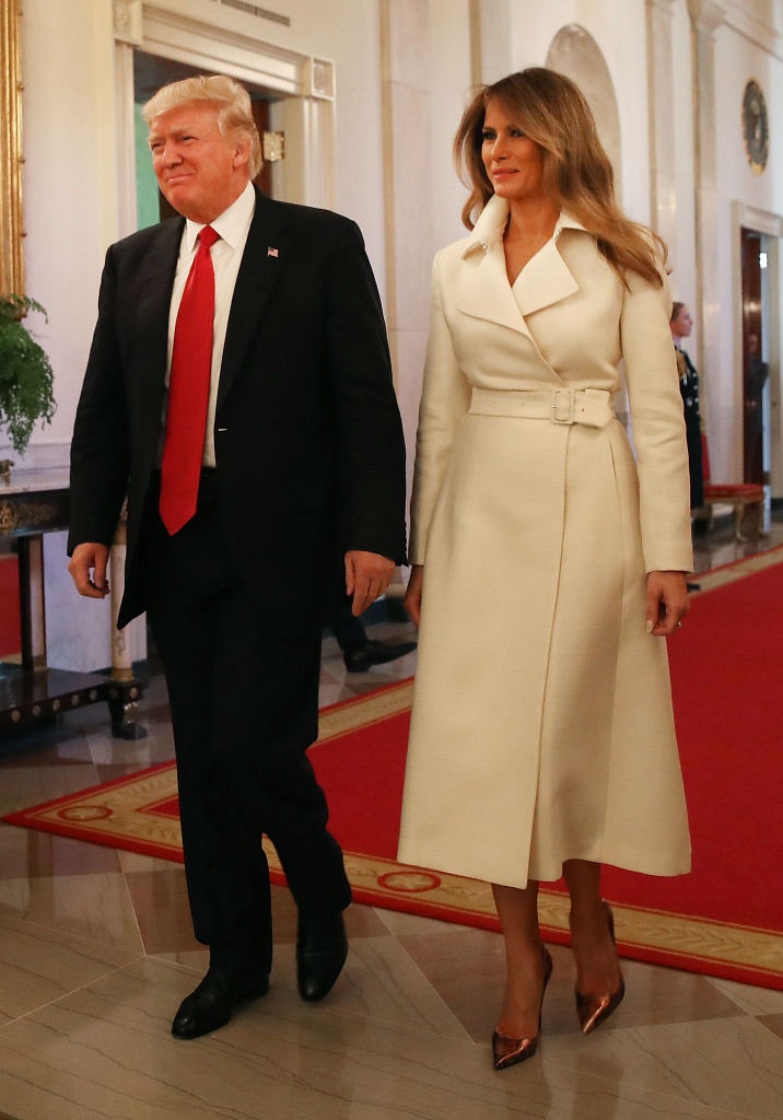 И будь то инаугурационный дымчато-голубой костюм Ralph Lauren, платье в пайетках Monique Lhuillier, смокинг Dolce & Gabbana или джинсы-скинни J. Brand в компании жакета-бушлата Tommy Hilfiger — первая леди выглядела одинаково эффектно как в изысканных вечерних нарядах, так и в вещах стиля casual. Модные критики обвиняли её в копировании стиля Леди Ди и даже называли новой Жаклин Кеннеди, но супруге Дональда Трампа удалось самой стать объектом подражания. Платье-футляр, подчеркивающее идеально стройную фигуру, лодочки на шпильке, фирменная укладка и строгий прищур — образ, который покорил сердца миллионов.