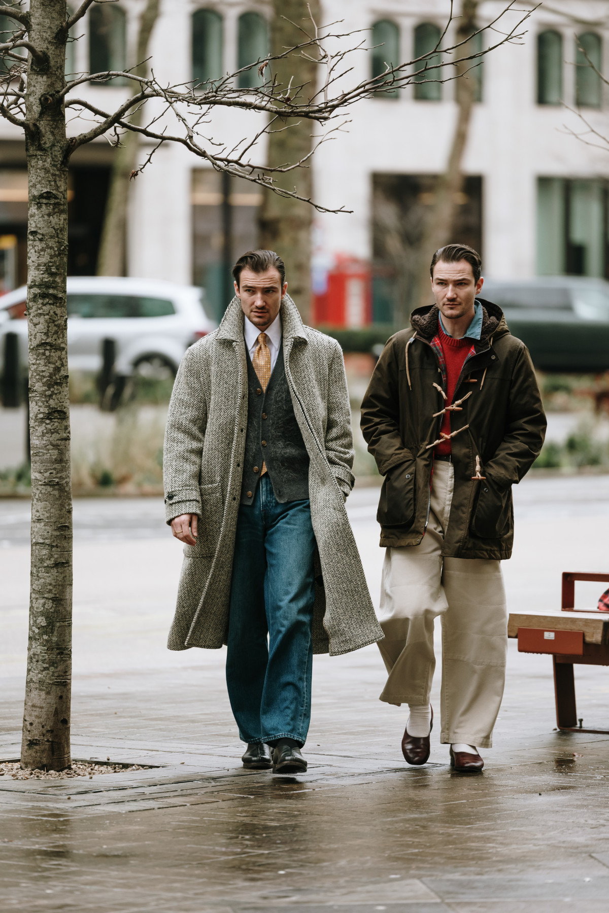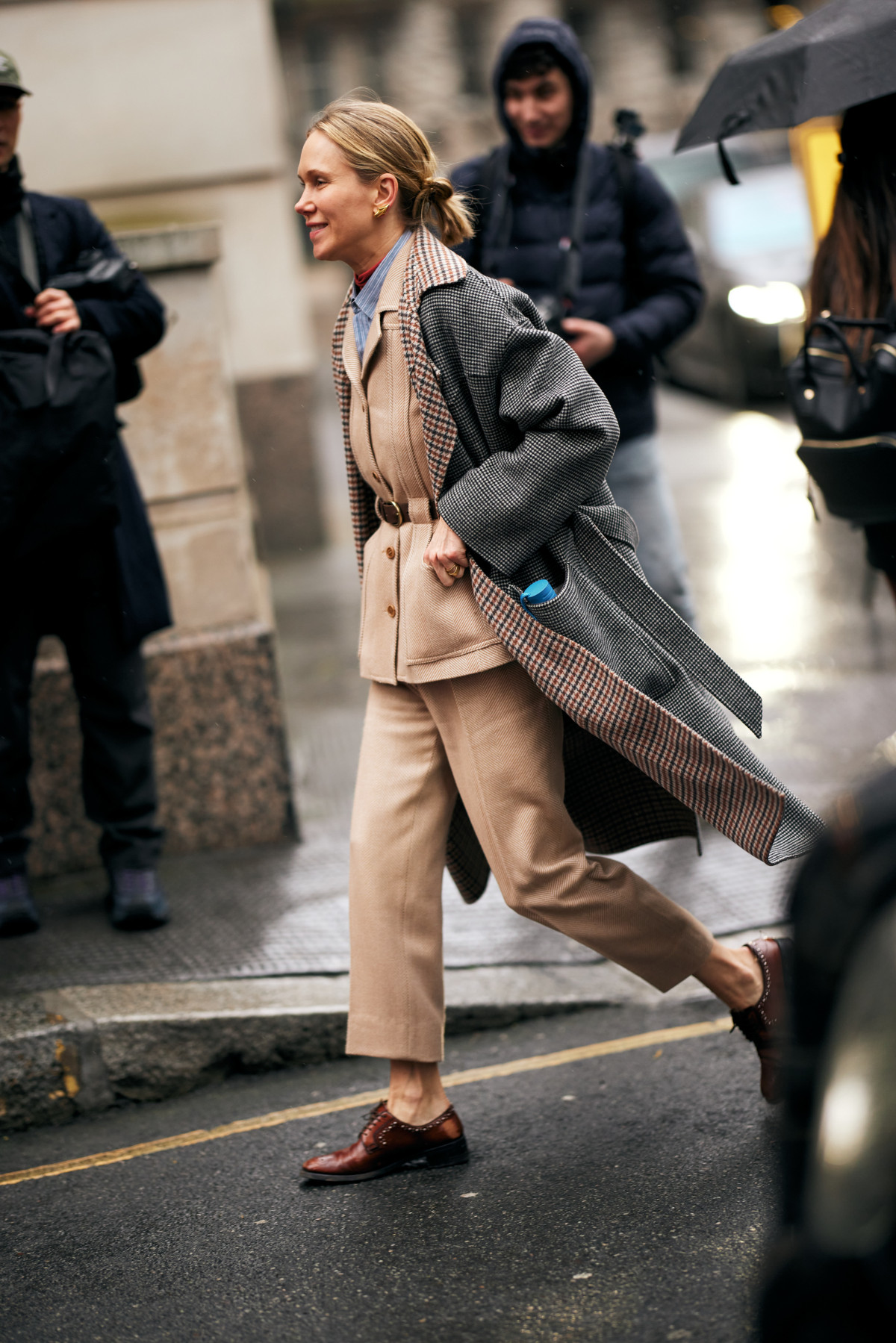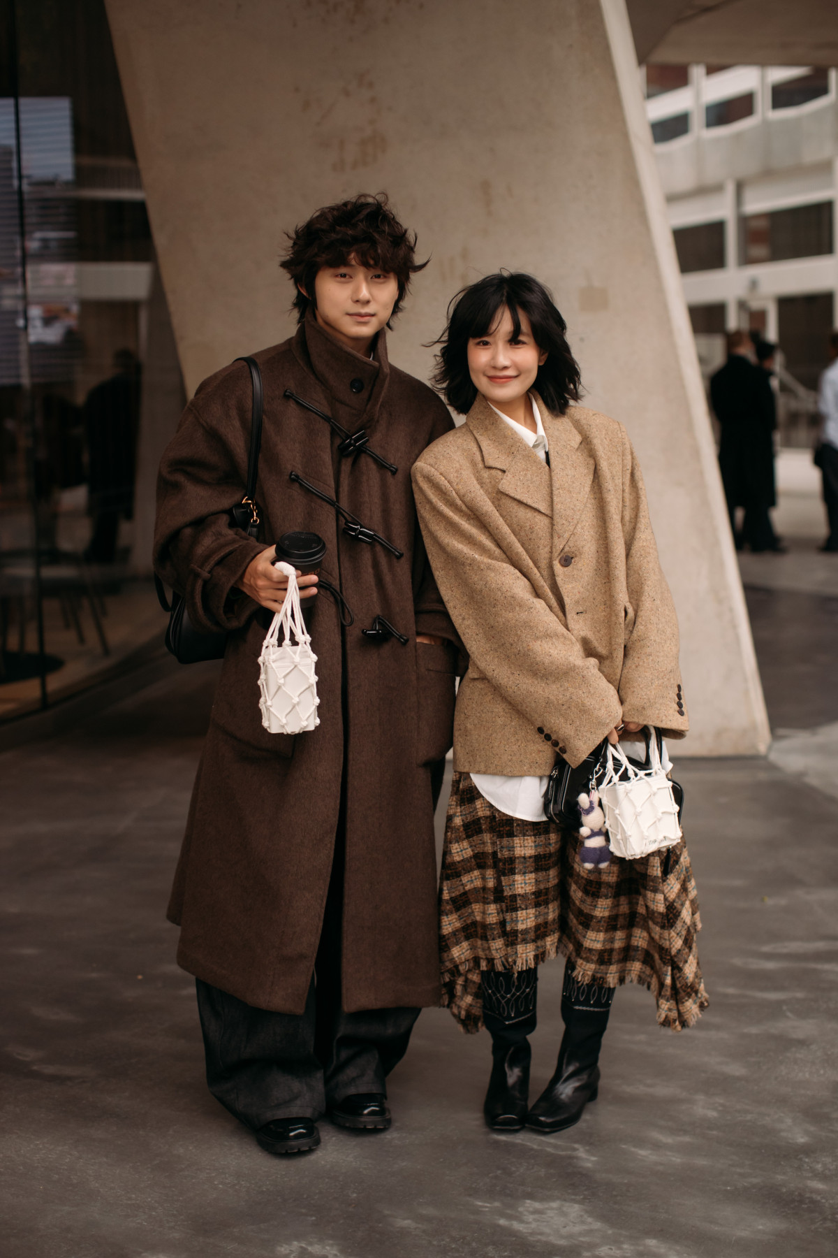 Вічна класика у вигляді брючних костюмів теж захопила streetstyle. Цього разу дівчата показали маскулінні об’ємні комплекти, що втілювали розслаблений і невимушений стиль, тоді як чоловіки зробили акцент на сетах із дещо більш приталеними піджаками.