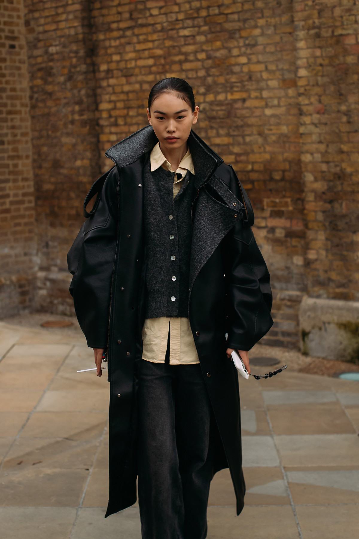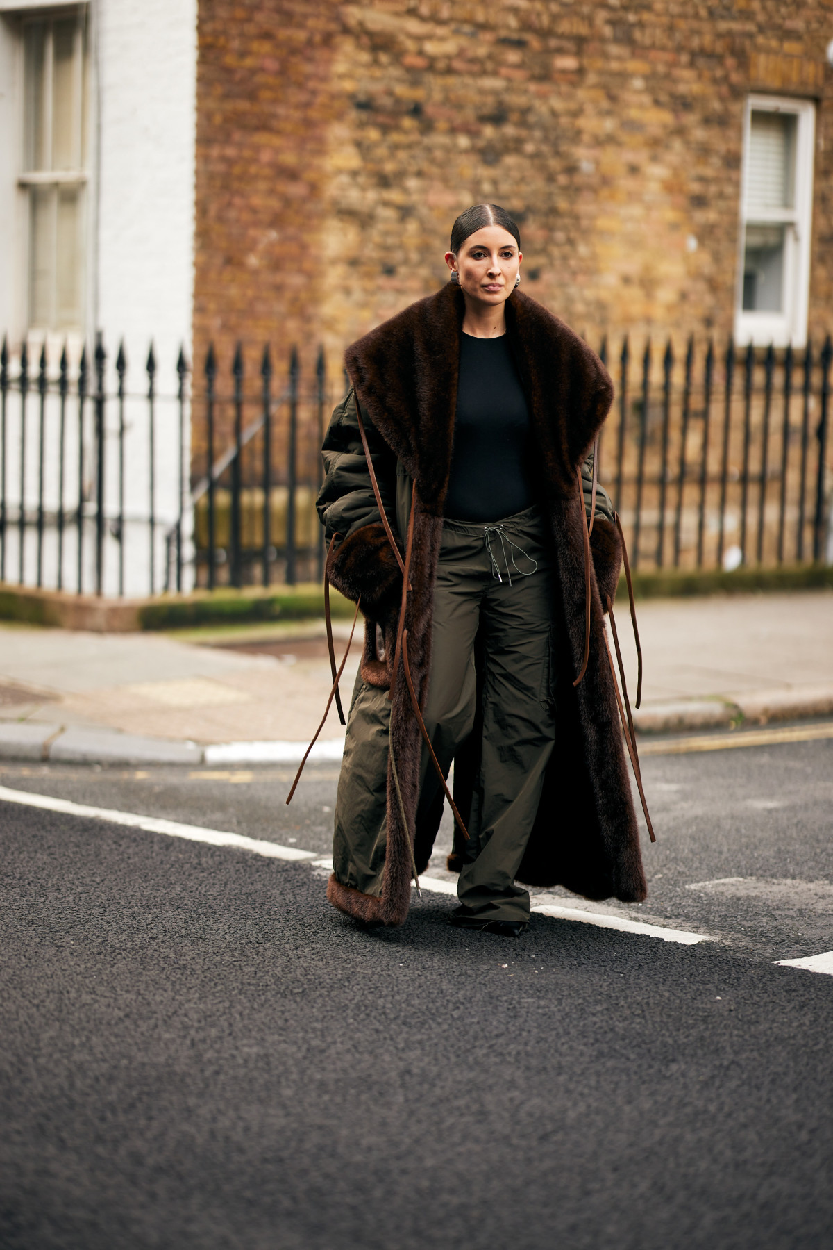 Оскільки зима продовжила заявляти про себе, основну увагу лондонські модниці та модники звернули на різноманітне обігрування верхнього одягу. Окрім уже звичних нам довгих пальт, масивних вінтажних шуб і тренчів, яких, до речі, теж було вдосталь, ми побачили й трендові куртки в утилітарному стилі з великими кишенями, стьобані тренчі, шкірянки, а також бомбери, доповнені елементами з екохутра. Не зникла з п’єдесталу модних тенденцій і замша, тож придивляємося і до образів з м’якими коричневими блейзерами.