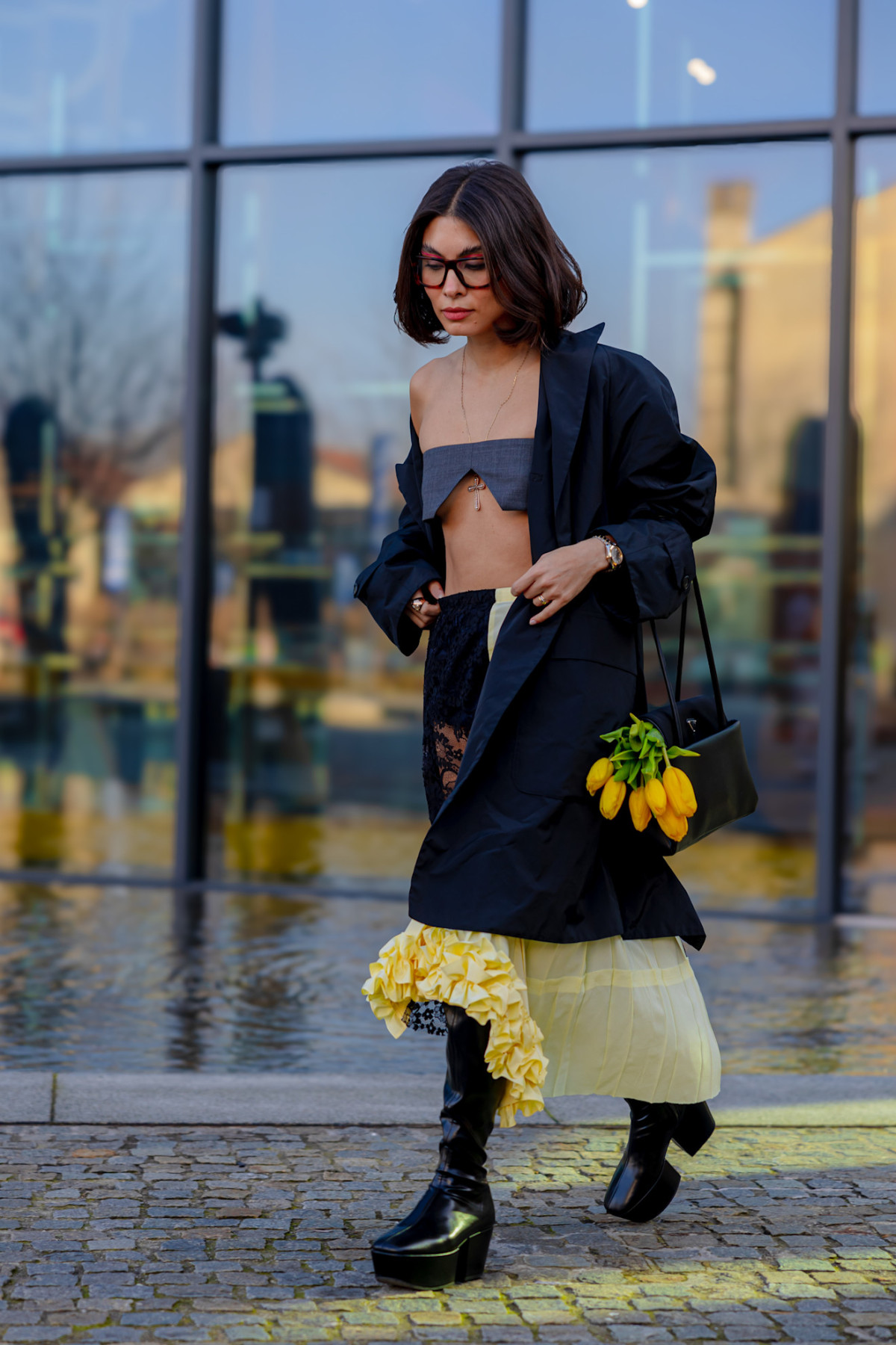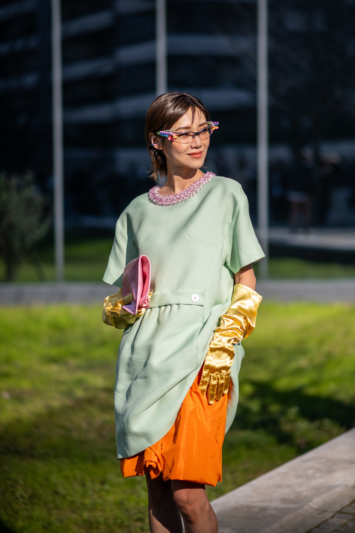 На вулиці Мілана завчасно прийшла весна — модниці зі стрітстайл-хронік згадали про яскраві весняні кольори. Світло-зелений, рожевий, ніжно-блакитний, червоний, жовтий у різних комбінаціях в одному образі — на вулицях італійської модної столиці панує колорблок, один із весняних трендів.