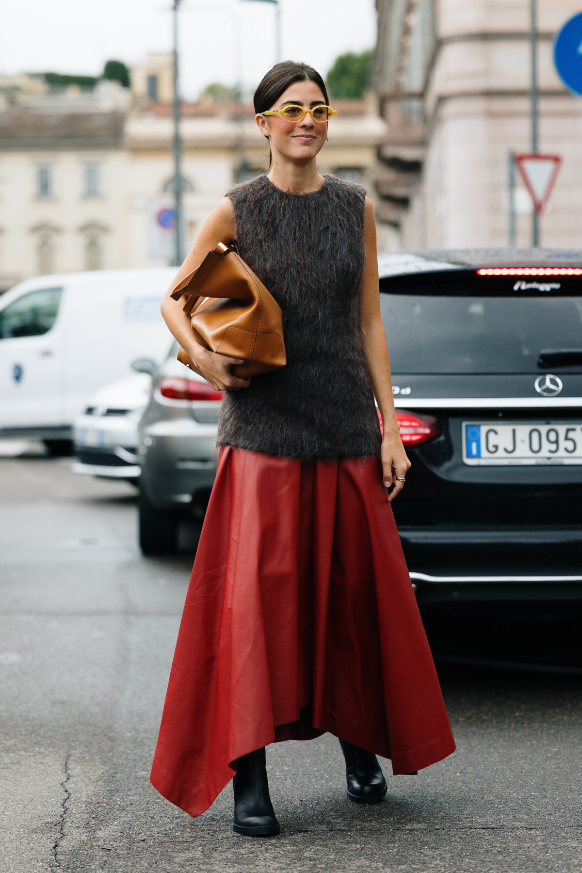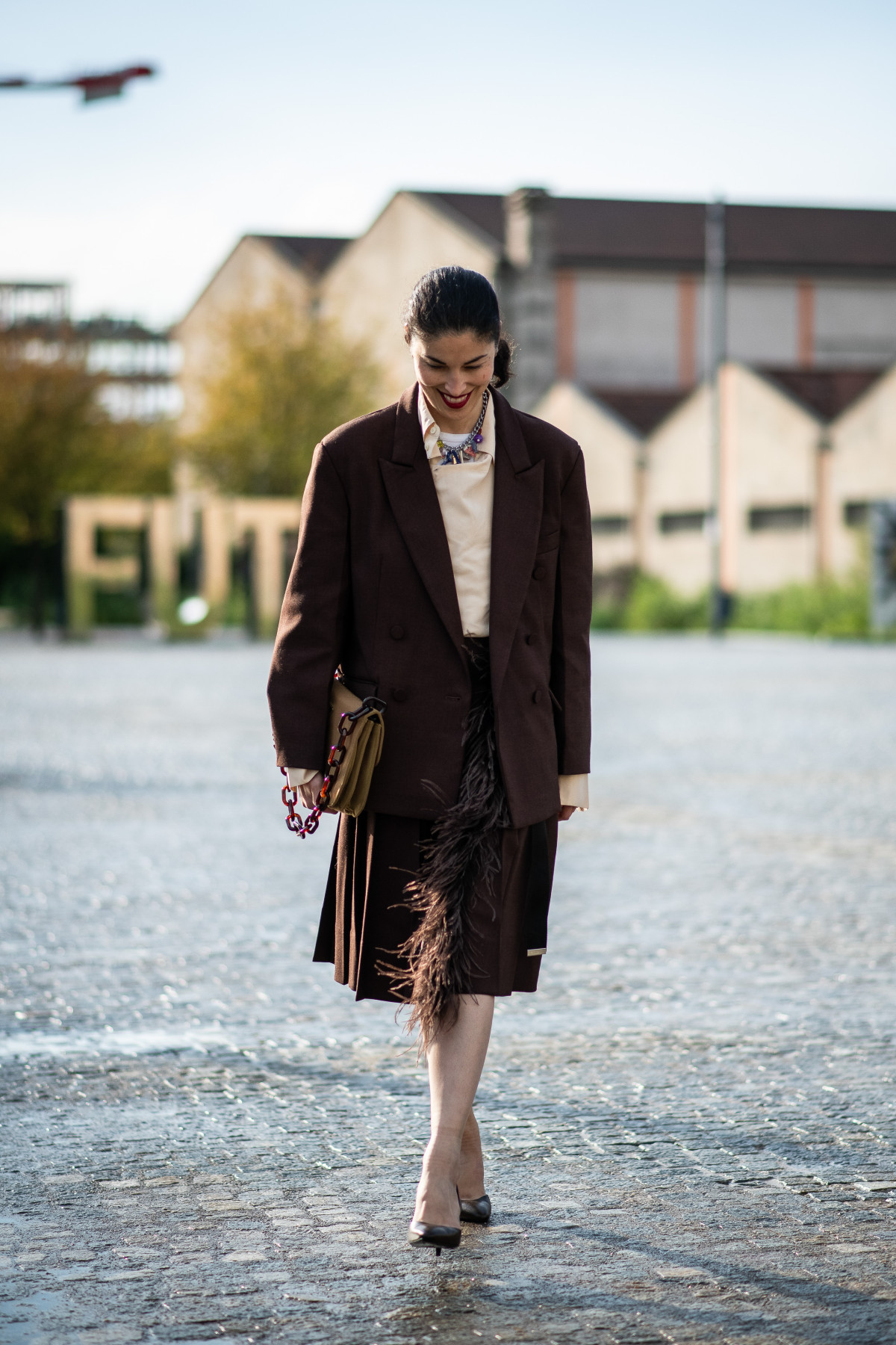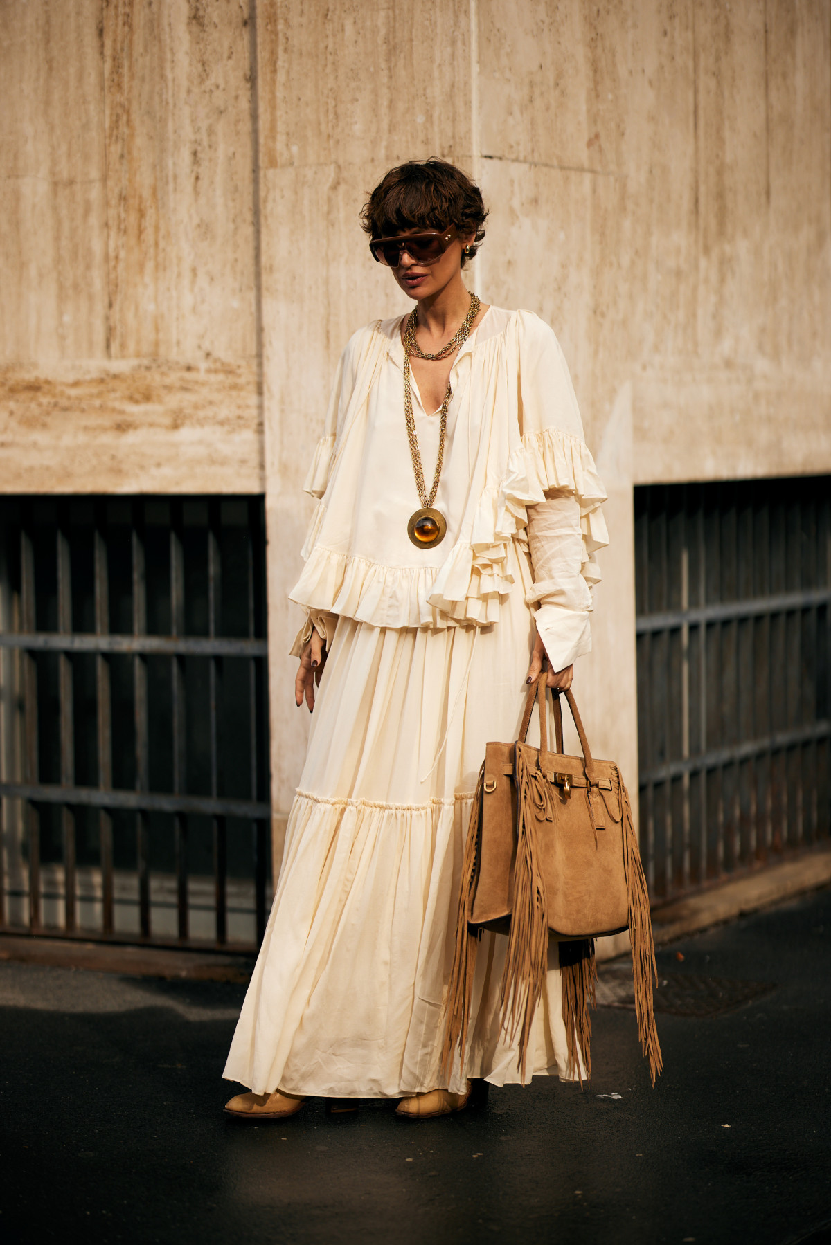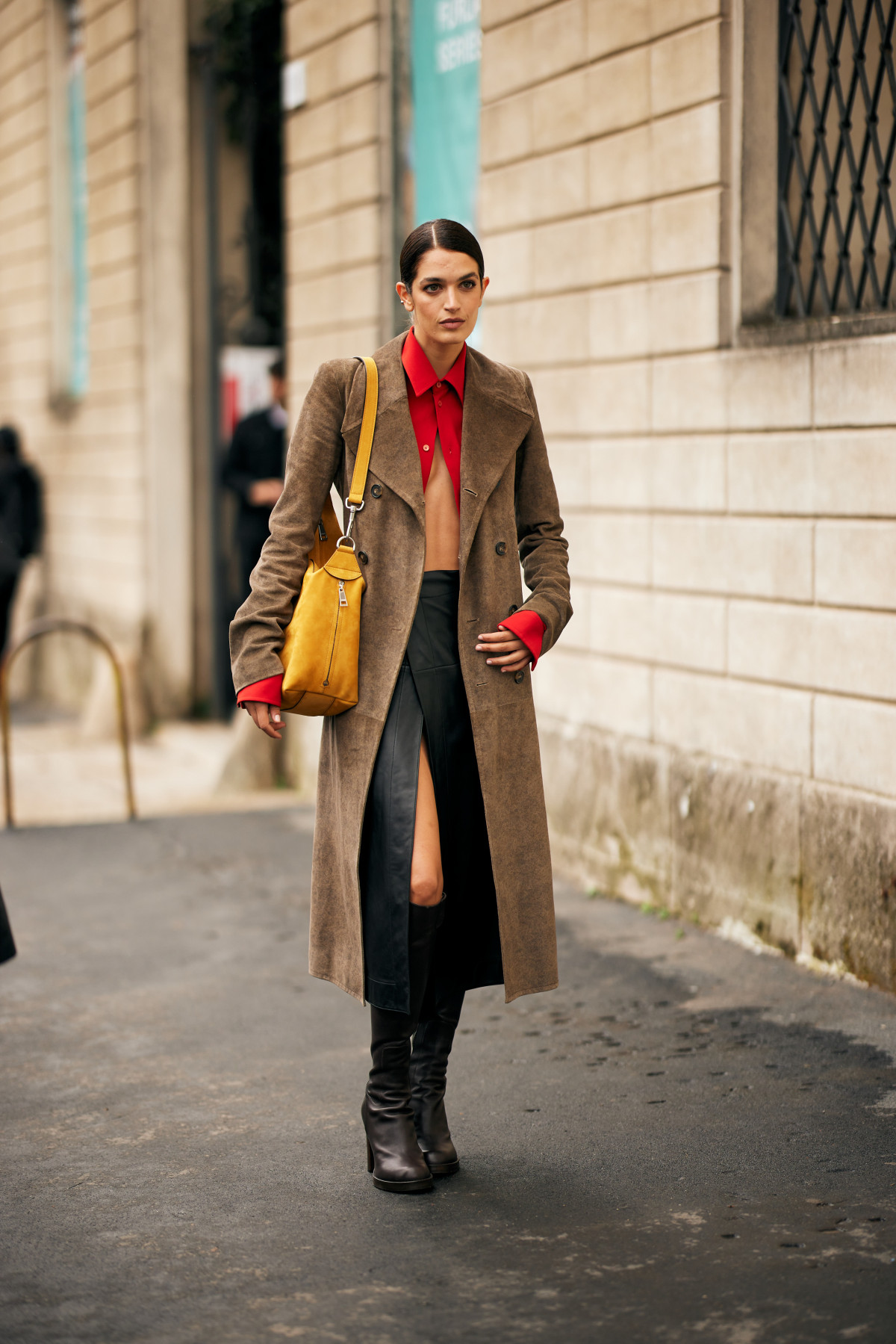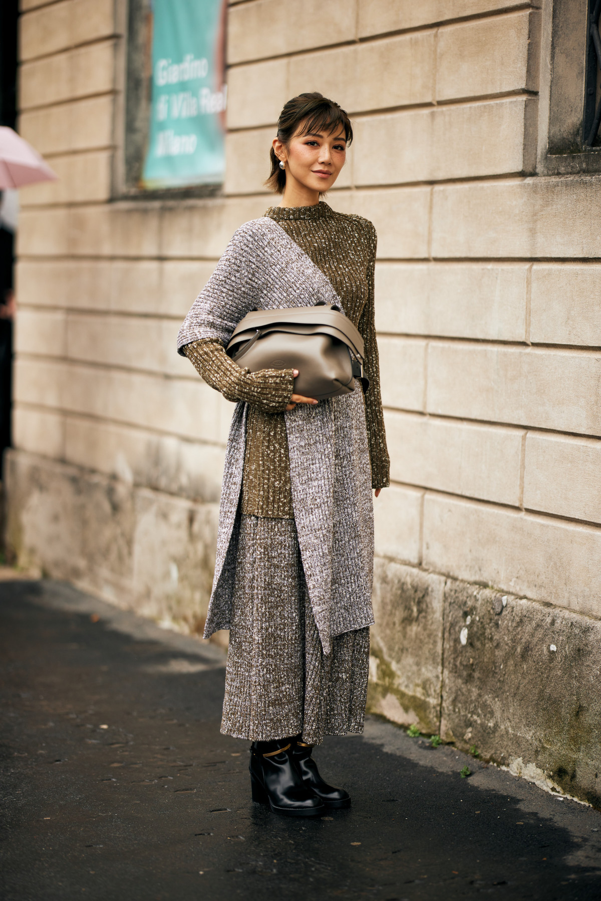 На відміну від лондонських fashion-зірок, які вже впевнено інтегрували у свої образи найрізноманітніший верхній одяг — від структурованих пальт до утилітарних курток і навіть шуб, — гості Мілану скористалися перевагами теплої погоди й показали поєднання для мінливого сезону, коли вдосталь лише жакета чи легкого тренча. Окрім цього, серед фаворитів модниць опинилися теплі светри в поєднанні з сорочками, блузи в стилі бохо в комбінації з довгими вільними спідницями, а також окремі варіації офісної естетики з її брюками палаццо та блейзерами.