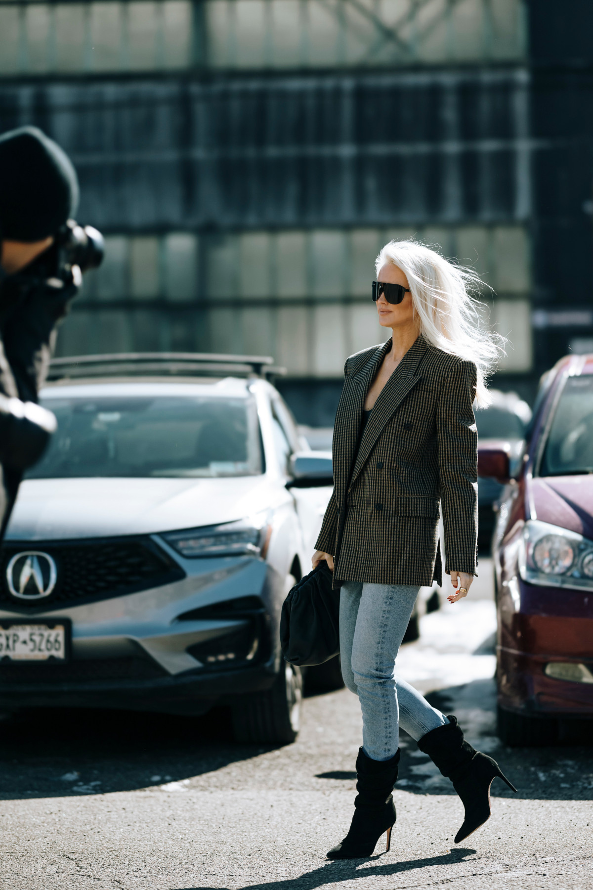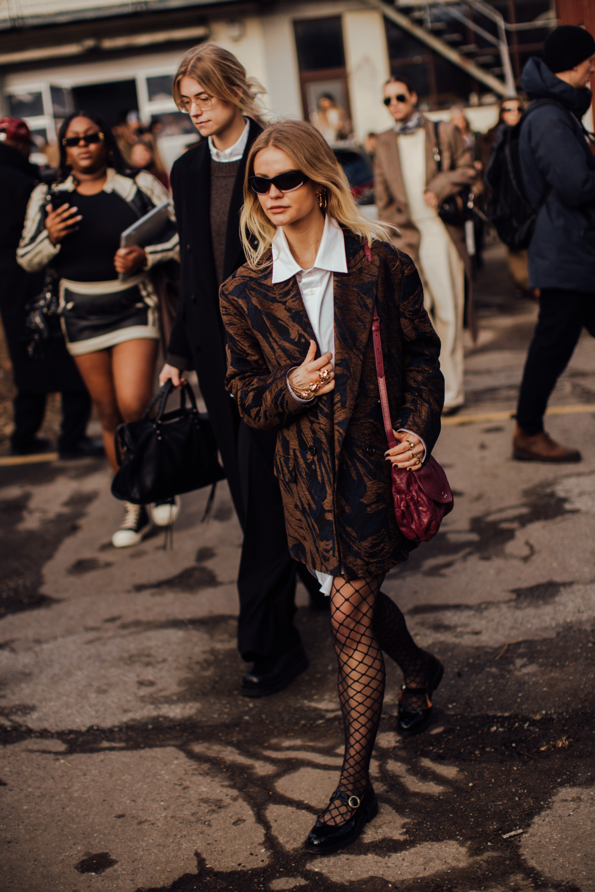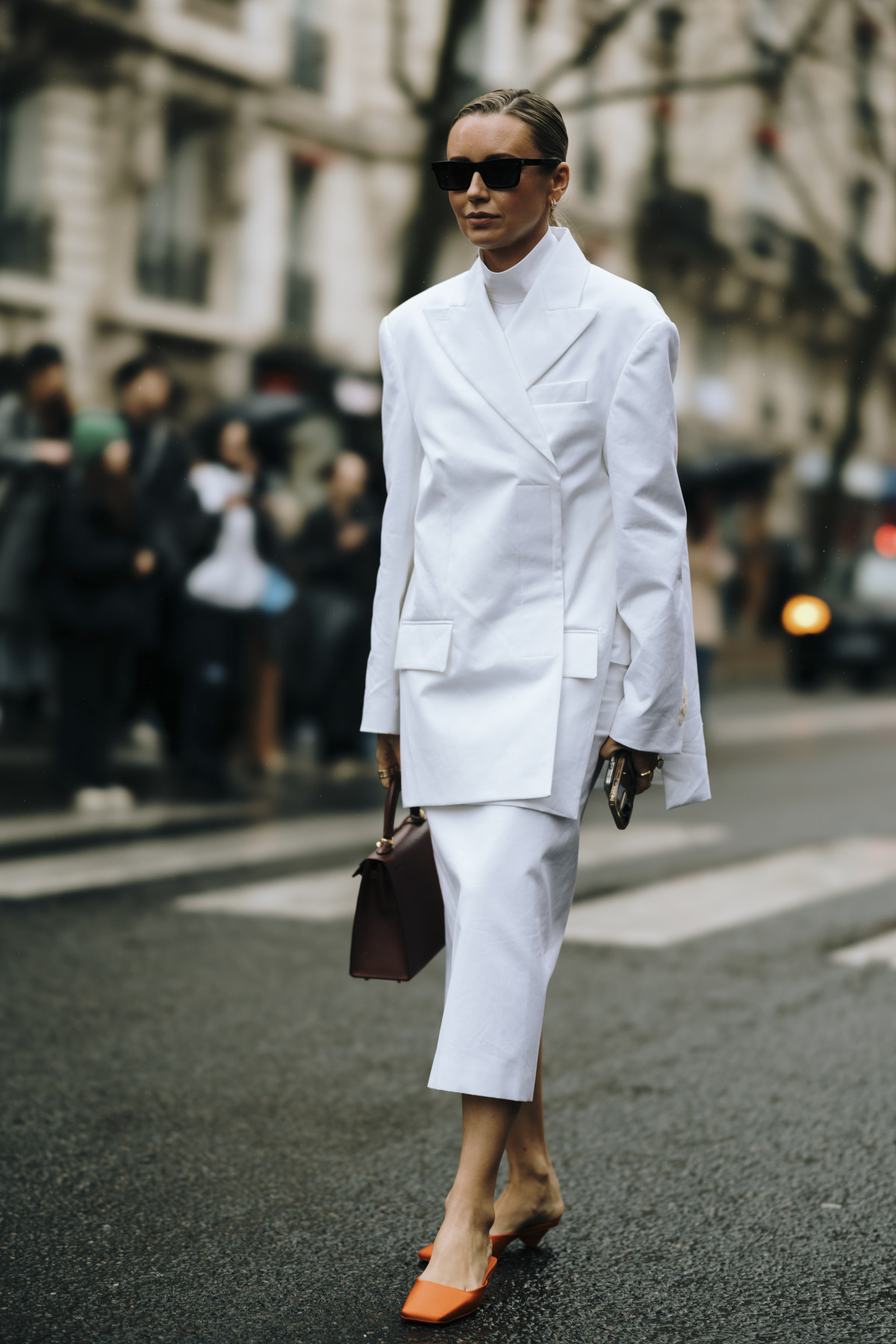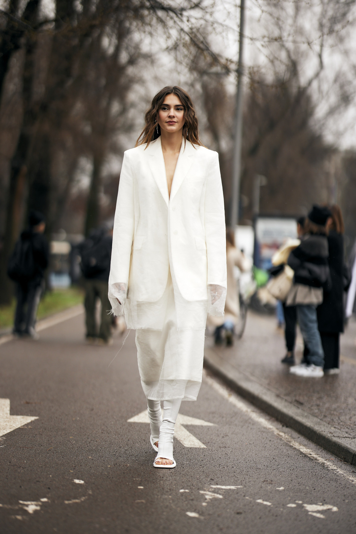 На вуличних подіумах модних столиць інфлюенсерки продемонстрували найрізноманітніші моделі блейзерів та комбінації з ними. Так, дехто зупинявся на джинсових моделях, хтось — на не менш трендових шкіряних, а хтось — на базових костюмних, які поєднував із брюками того ж відтінку. Якщо ж говорити про фасони, то об’ємні оверсайз-варіанти нікуди не зникли, проте, як ми зауважили, на передній план вийшли й приталені моделі з акцентною лінією талії та елементи з широкими плечима.