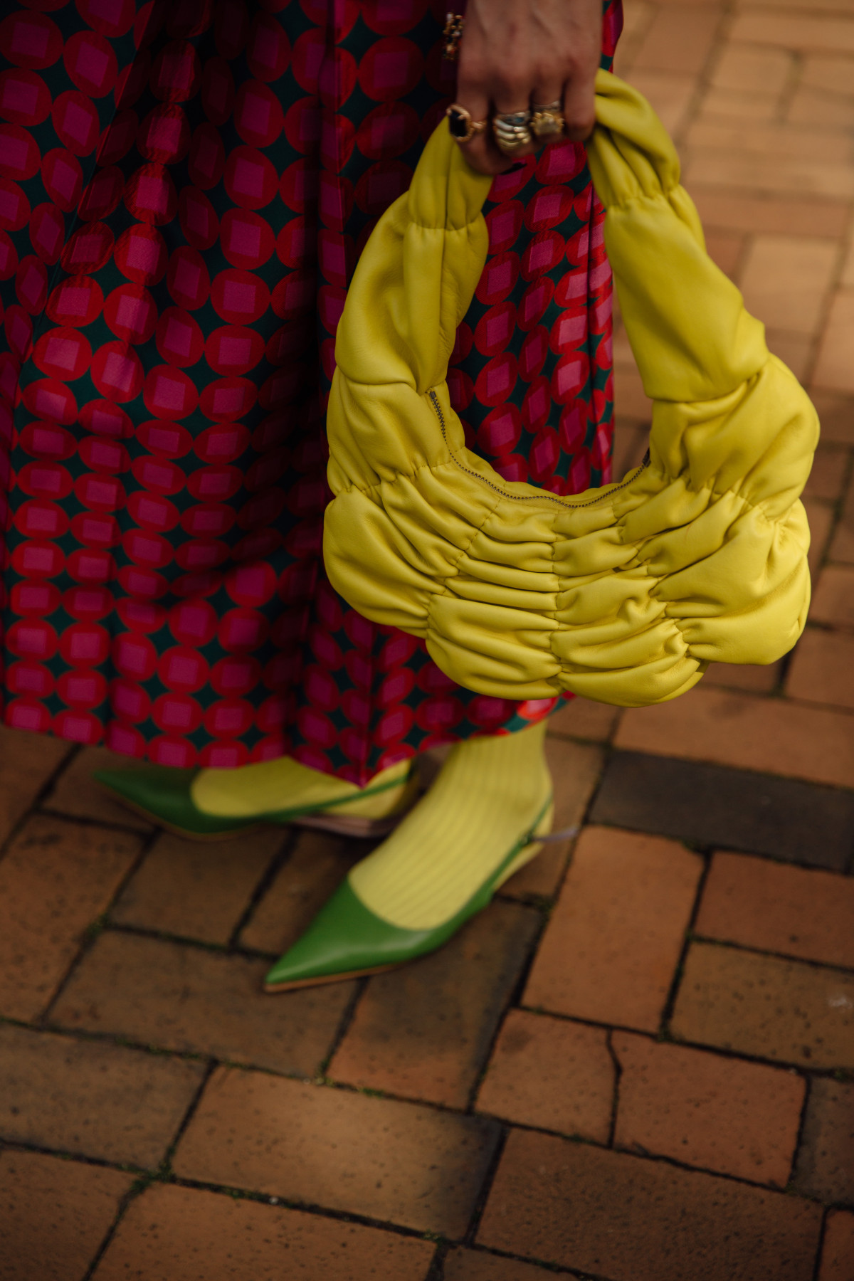 Копенгагенські модниці не були б собою, якби не додали Тижню моди більше яскравих відтінків. Хоч здебільшого модниці зупинялися на базових кольорах, знайшлося й чимало тих, хто вирішив привернути увагу зеленими сумками та шкарпетками, червоними блузами й колготками чи блакитними сукнями, всуціль вкритими лелітками. Головна порада від fashion-блогерок — збалансовувати все мінімалістичними предметами одягу чи спокійнішими тонами.