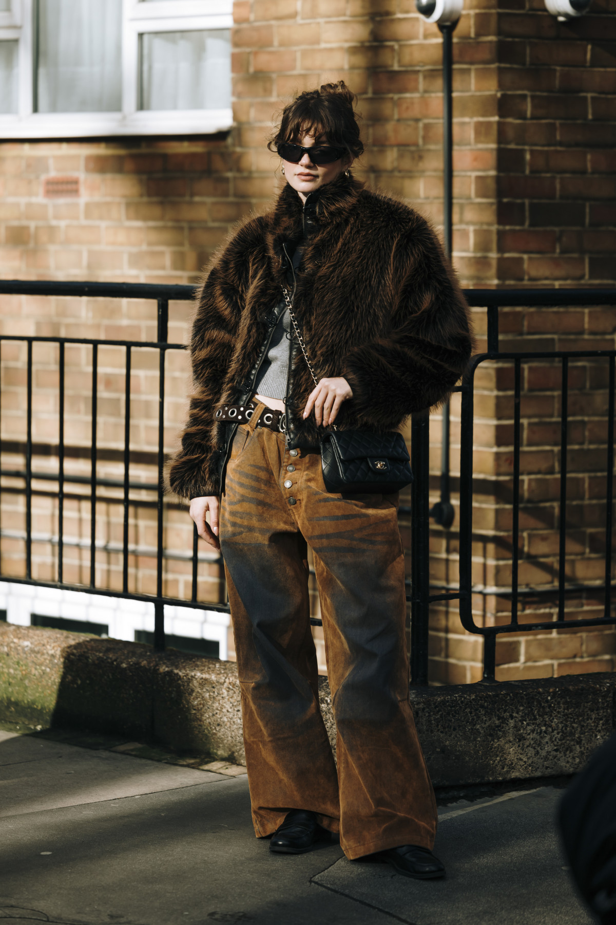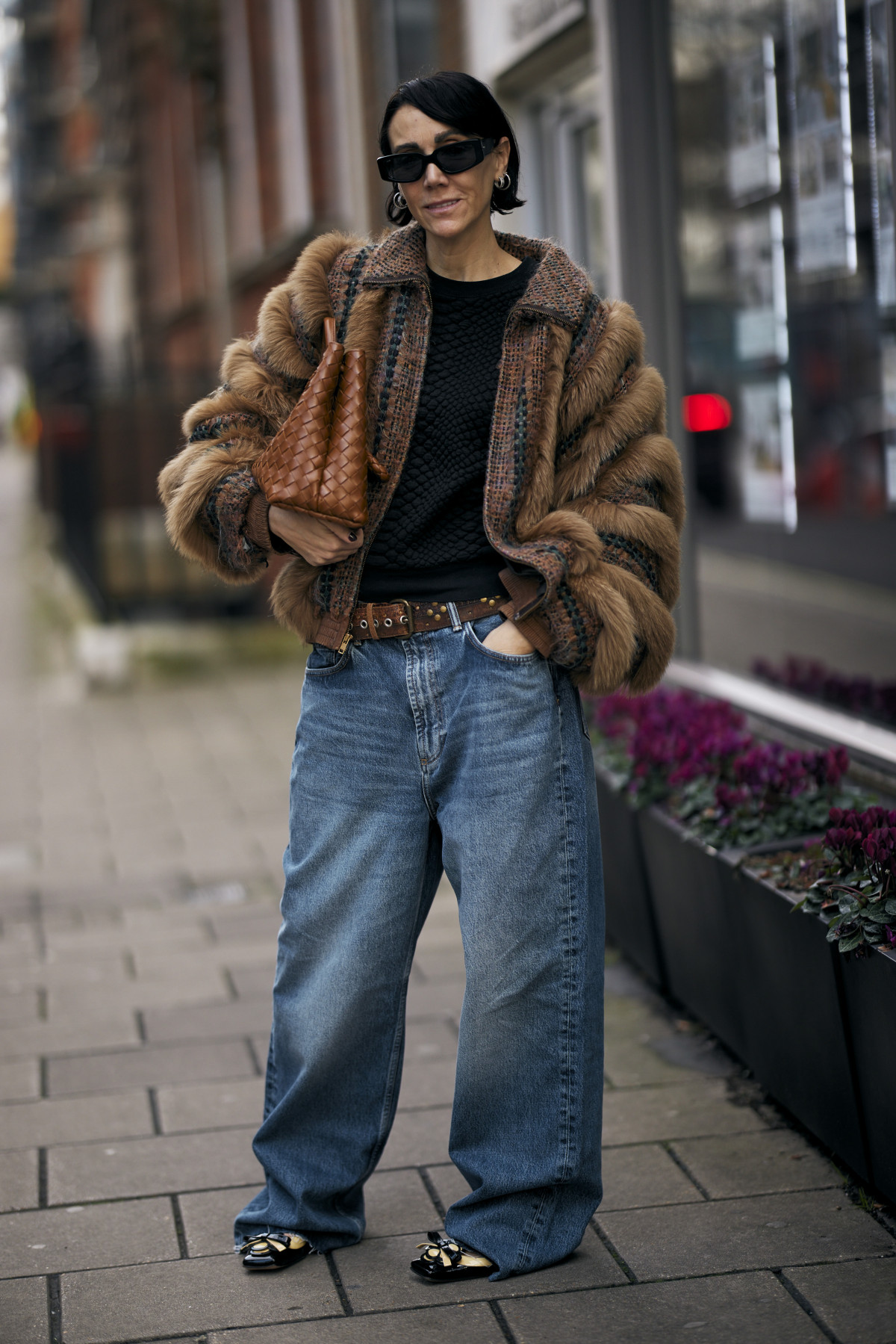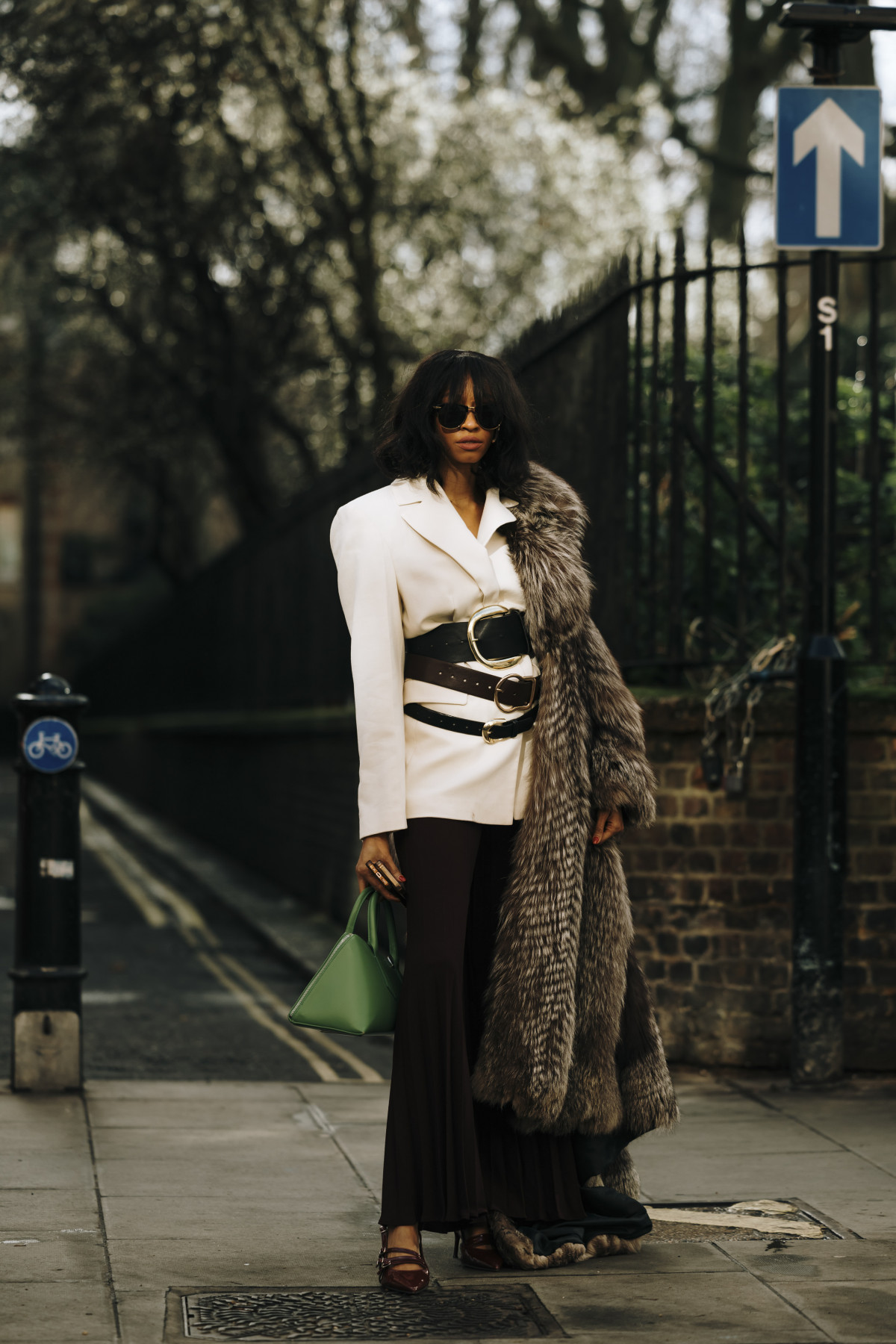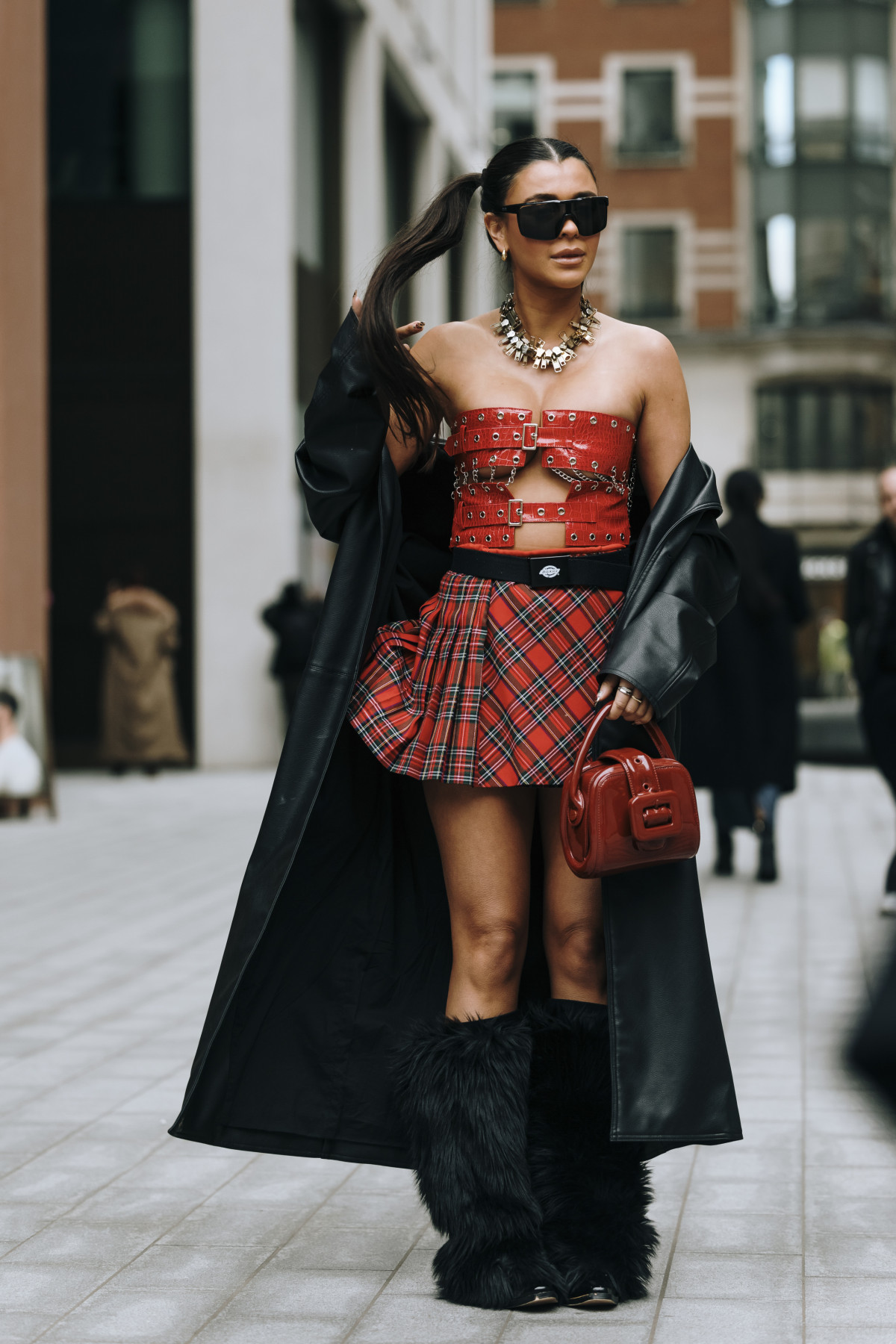 Як і в Нью-Йорку, вуличні подіуми були наповнені трендовими образами. Зокрема, серед аутфітів домінували популярні у 2024-му естетики — drandpa core, який ми помітили в об’ємних «дідусевих» піджаках і картатих принтах, і mob wife core, що проявлявся у великих хутряних шубах, доповнених сонцезахисними окулярами. Крім цього, фешіоніста віддавали перевагу червоним елементам в одязі, деталям із бахроми, а також анімалістичним принтам.