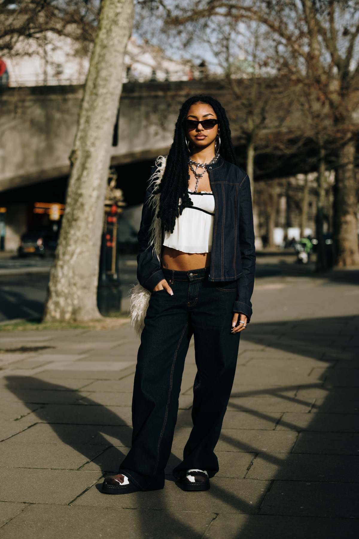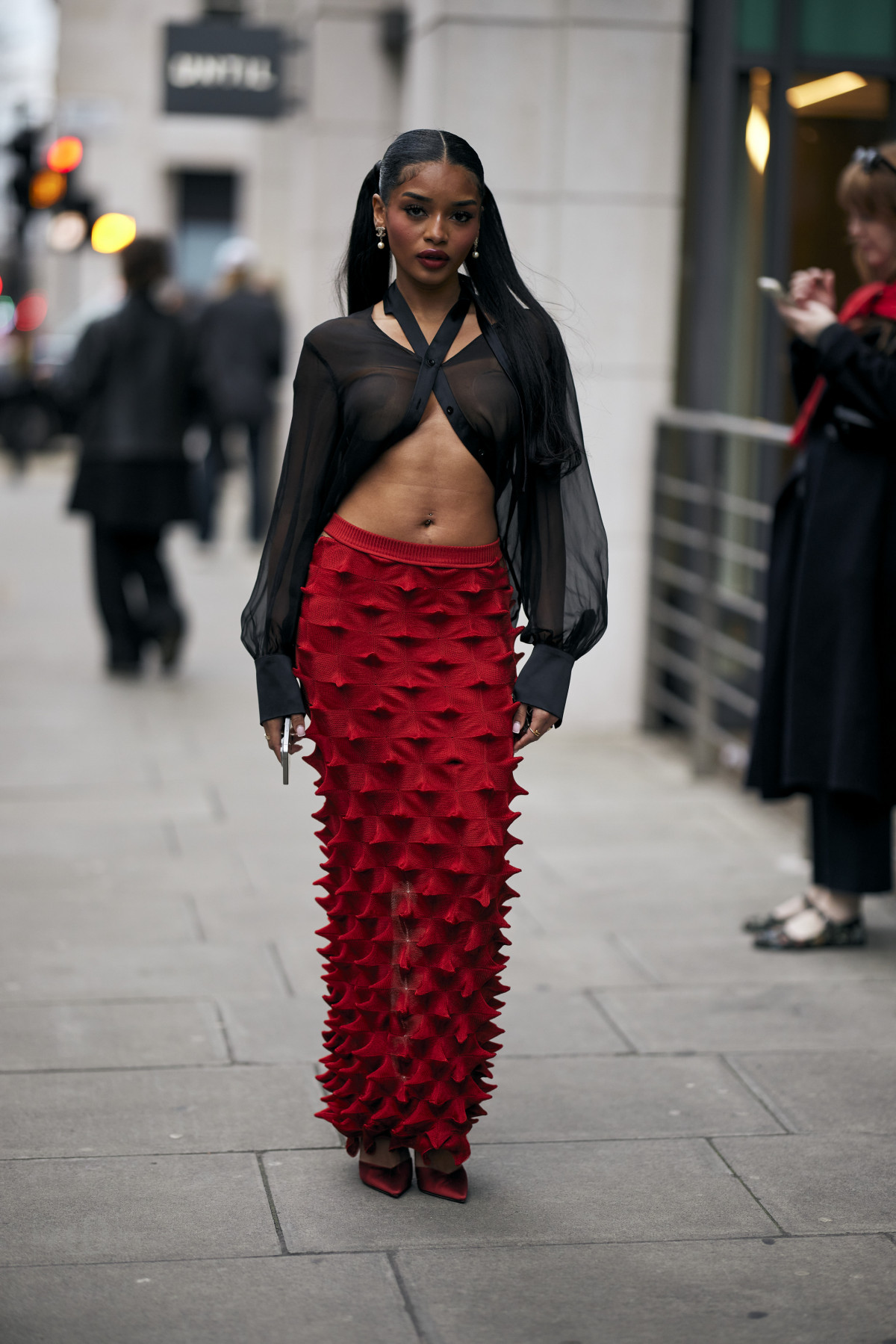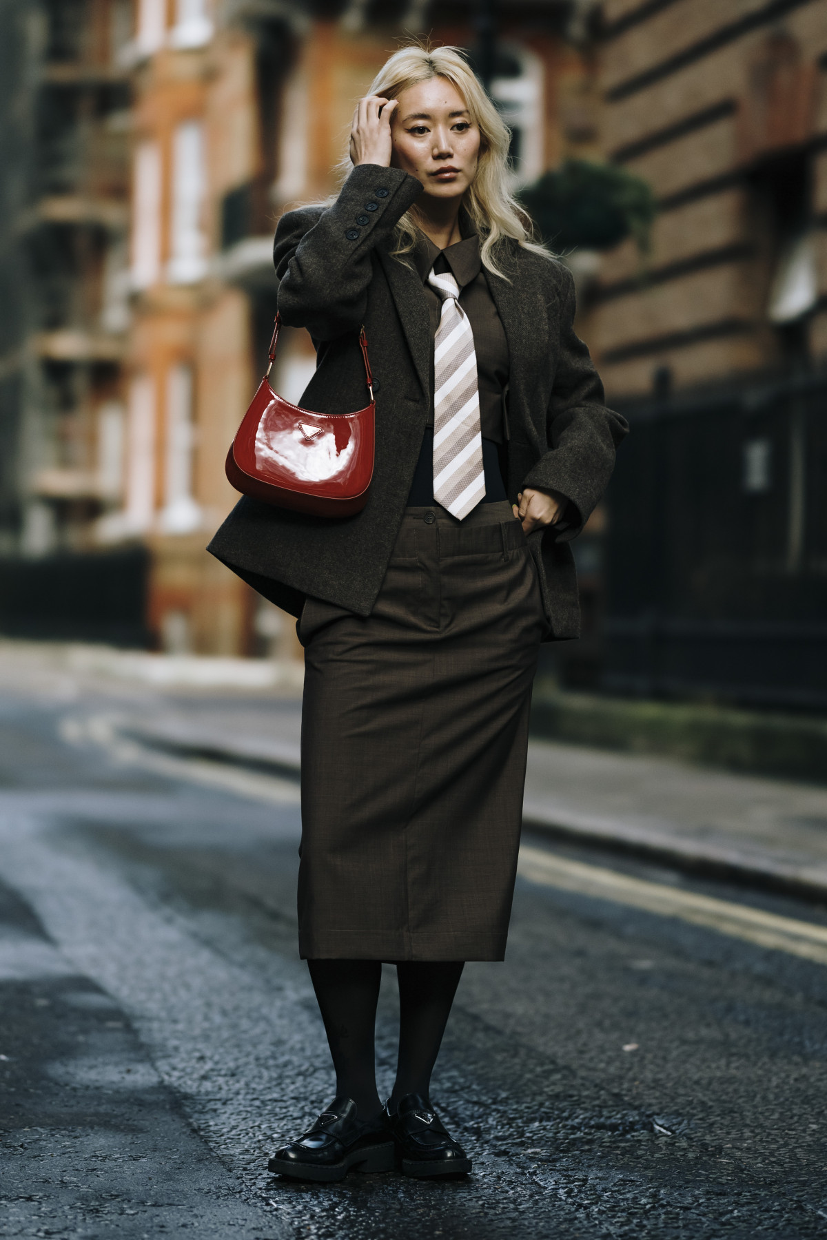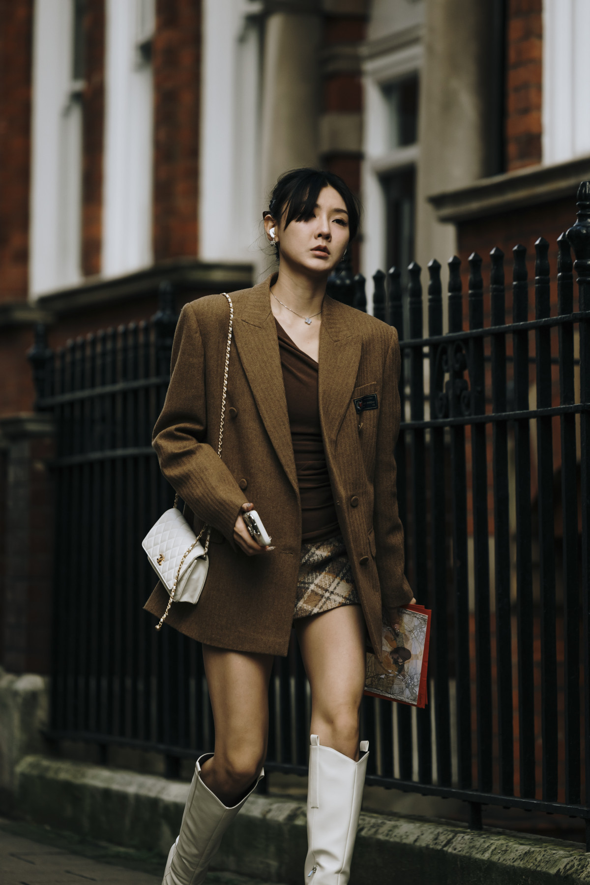 Як і в Нью-Йорку, вуличні подіуми були наповнені трендовими образами. Зокрема, серед аутфітів домінували популярні у 2024-му естетики — drandpa core, який ми помітили в об’ємних «дідусевих» піджаках і картатих принтах, і mob wife core, що проявлявся у великих хутряних шубах, доповнених сонцезахисними окулярами. Крім цього, фешіоніста віддавали перевагу червоним елементам в одязі, деталям із бахроми, а також анімалістичним принтам.