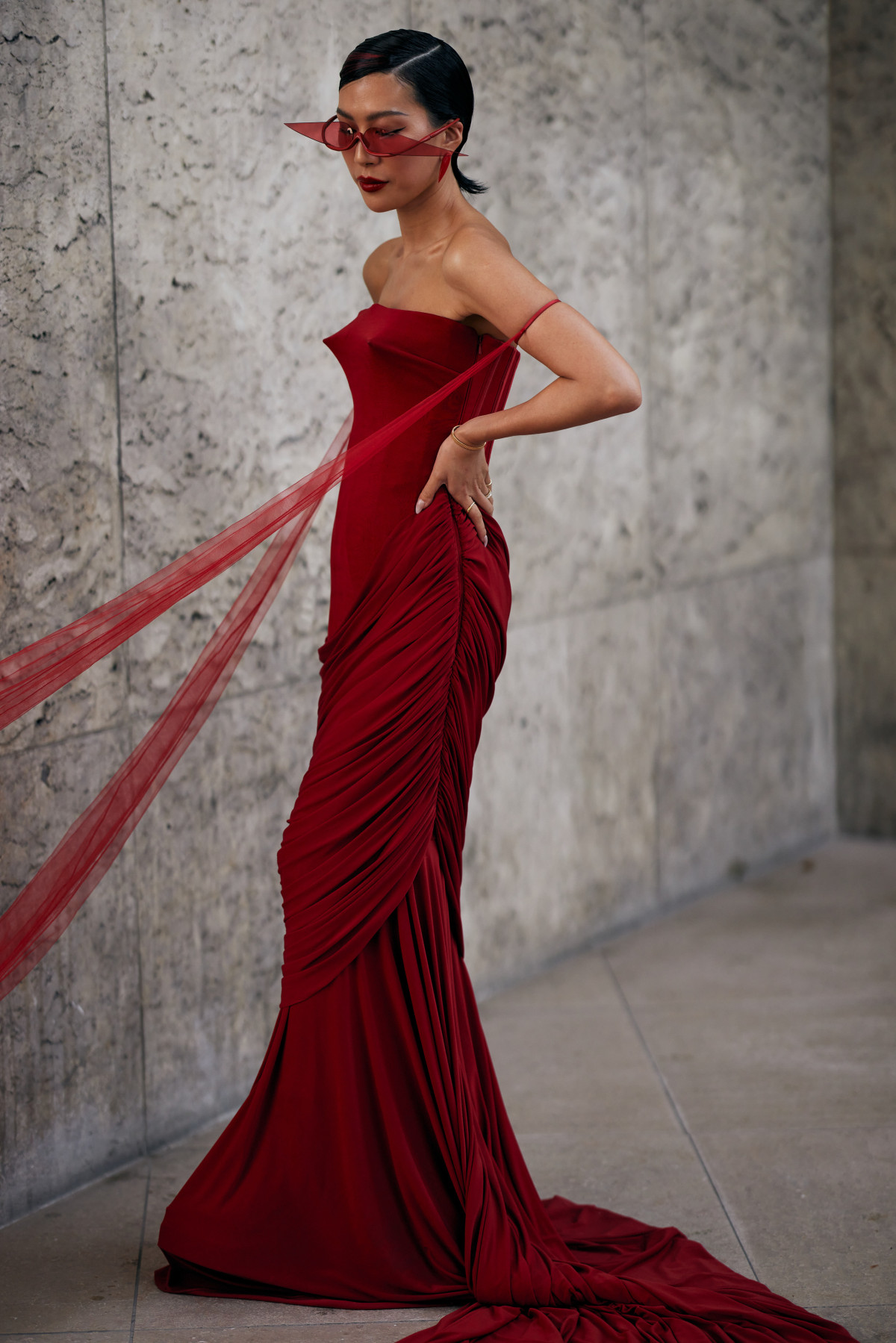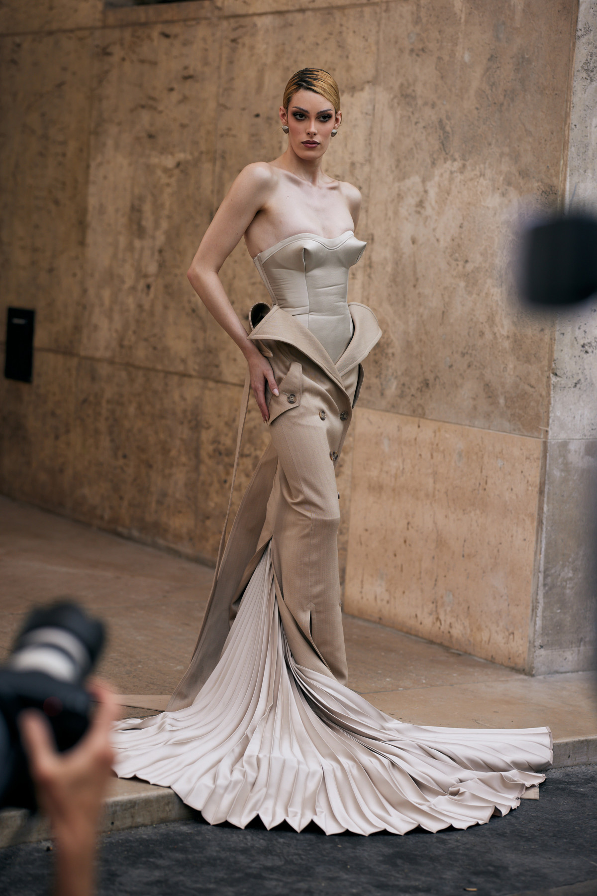 Цього разу у стрітстайлі панувала гра контрастів. Дехто з гостей зупинився на пишних сукнях, прикрашених різноманітними деталями: накидками, рюшами, шлейфами, драпіруванням, бахромою чи мереживом — тим самим намагаючись якомога більше виділитися з-поміж інших. Проте були й ті, хто вражав не об’ємними формами чи незвичними фактурами, а простим, але від того не менш елегантним вбранням, яке доповнювали аксесуари. Так, певні модниці у своїх образах обіграли тренд на мінімалізм 90-х та білизняну естетику. Перед нами з’явилися мереживні напівпрозорі комплекти, невагомі сукні прямого крою без зайвих елементів, а також маскулінні брючні костюми.