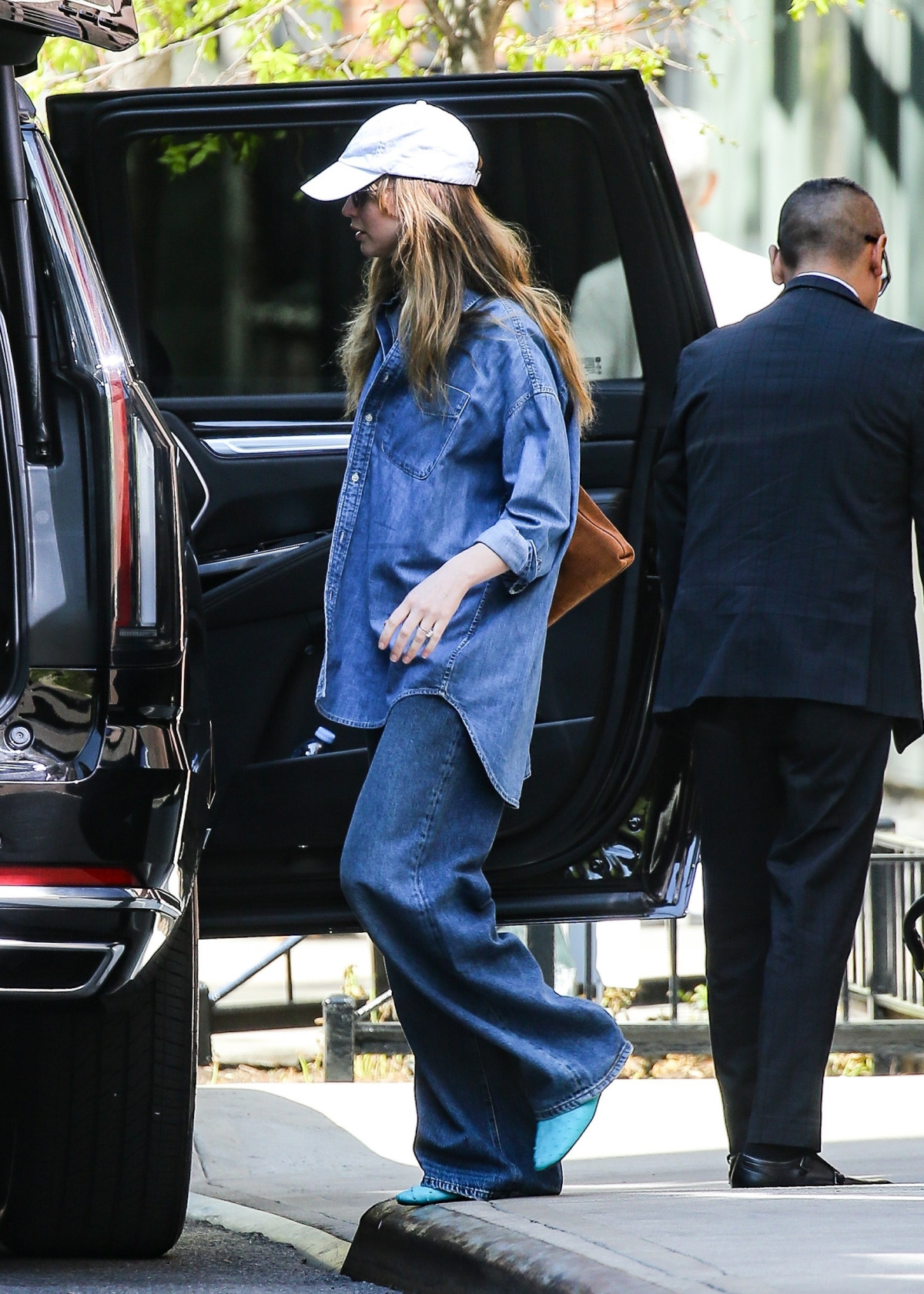 А ось аксесуари Дженніфер залишила максимально стриманими: коричнева шкіряна сумка великого обʼєму, заокруглені сонцезахисні окуляри та біла кепка. Усе разом сформувало той самий універсальний, але не перевантажений деталями образ, що ідеально пасує будь-якій нагоді.