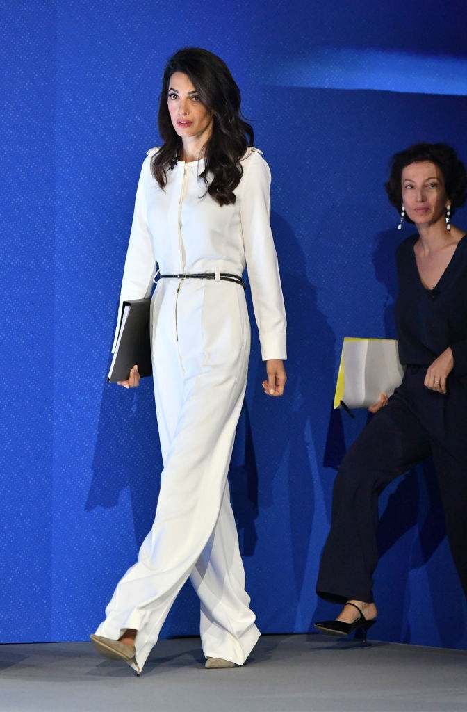 Амаль Клуни выглядит роскошно не только на красных дорожках, но и в рамках строгого офисного стиля. Правозащитница демонстрирует каждым своим выходом, что дресс-код может быть нескучным. Все ее образы подобраны согласно последним трендам сезона. Взгляните только на белый комбинезон — безоговорочный must have лета и осени 2020!