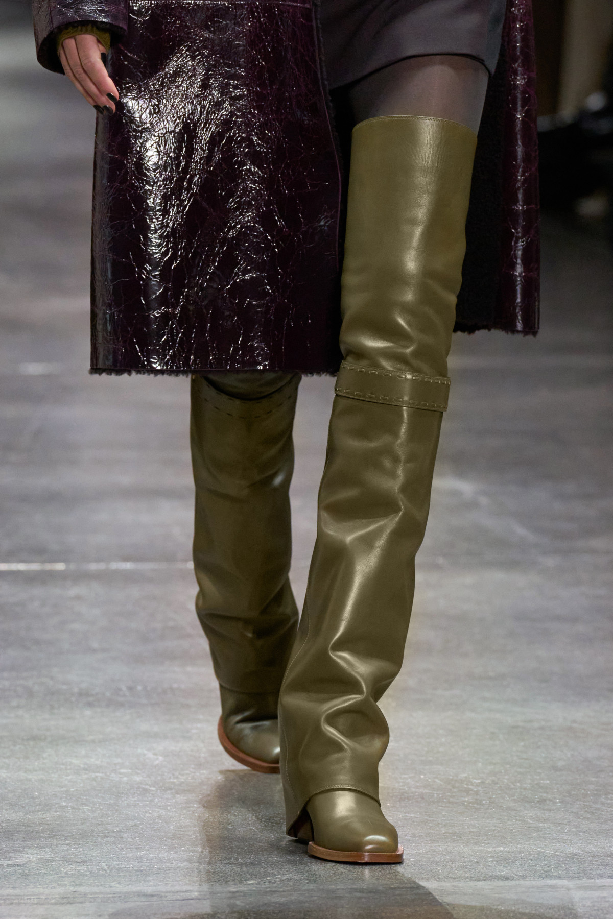 У колекціях дизайнерів ми побачили різні моделі подібного взуття: ультрависокі, як у Fendi, Chloe та Gucci, байкерські та мотоциклетні з чималою кількістю металічних деталей, як у Valentino та Miu Miu, а також обтислі, на високій платформі чи підборах і принтовані.