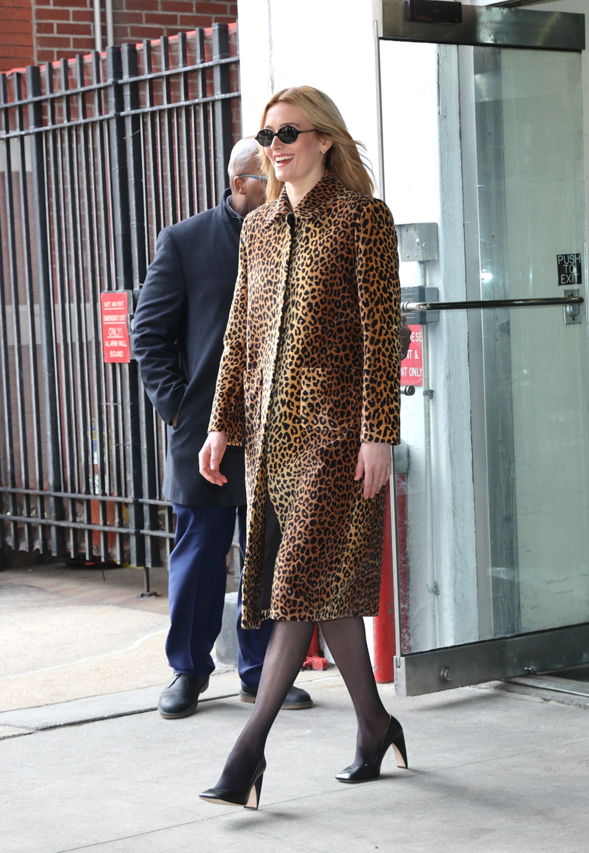 Окрім цього, ми відзначали й нестандартні поєднання з яскравим верхнім одягом. Глянцевий темний плащ та пальто з леопардовим принтом стали виразним доповненням повсякденних (і, знову ж таки, доволі стриманих) виходів Сари.